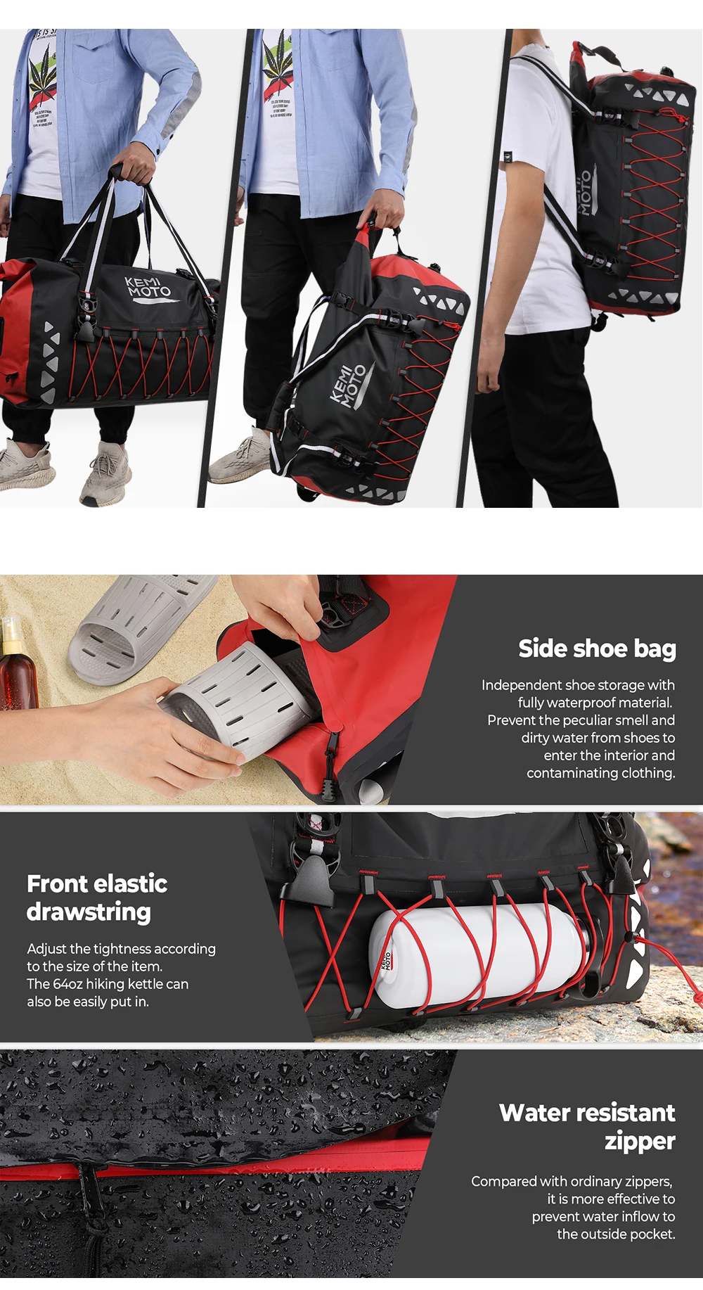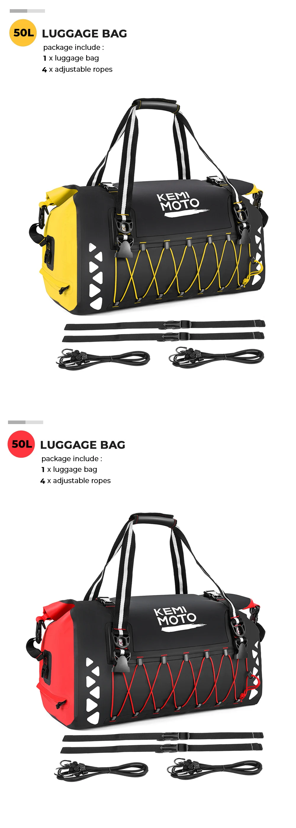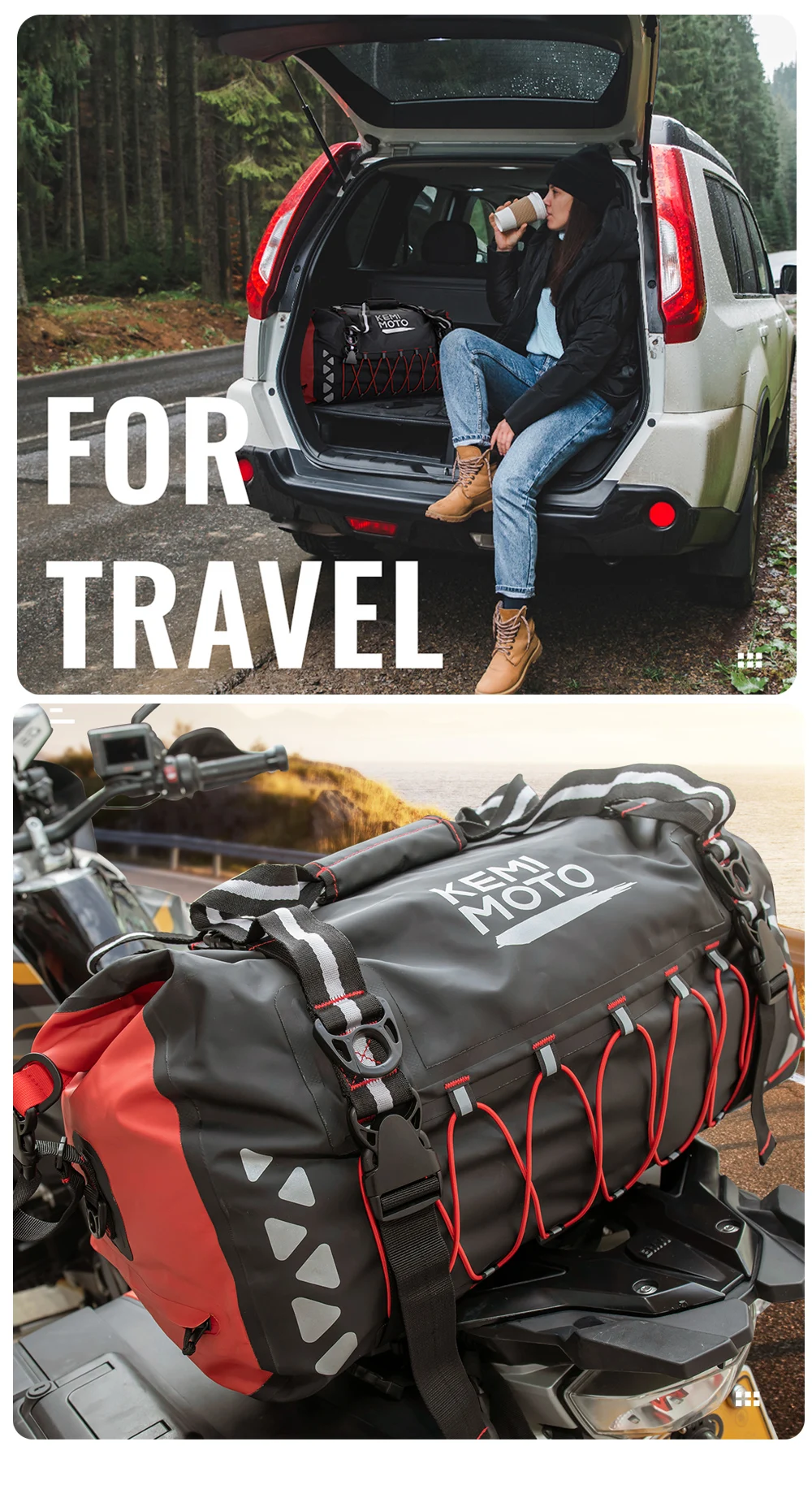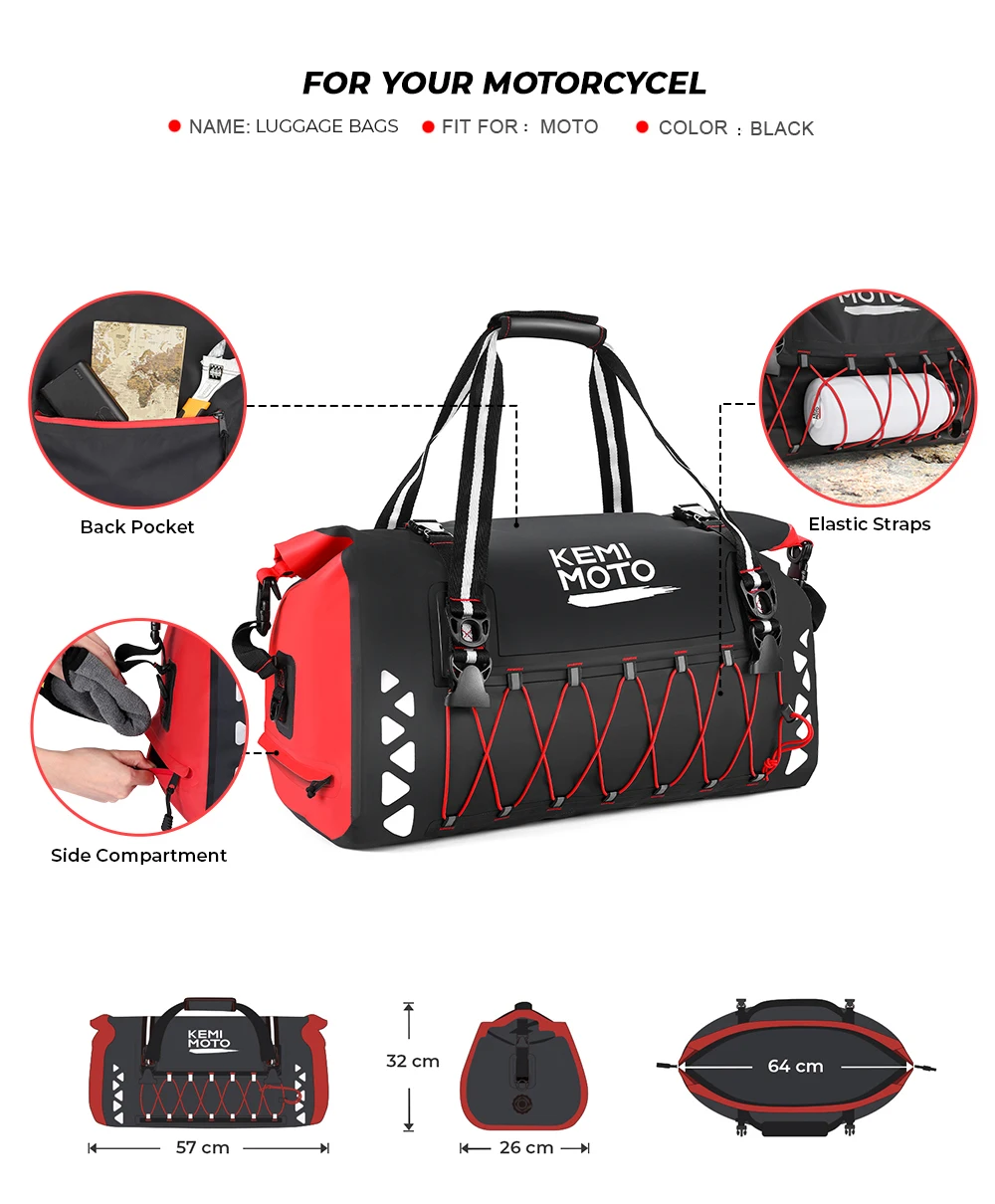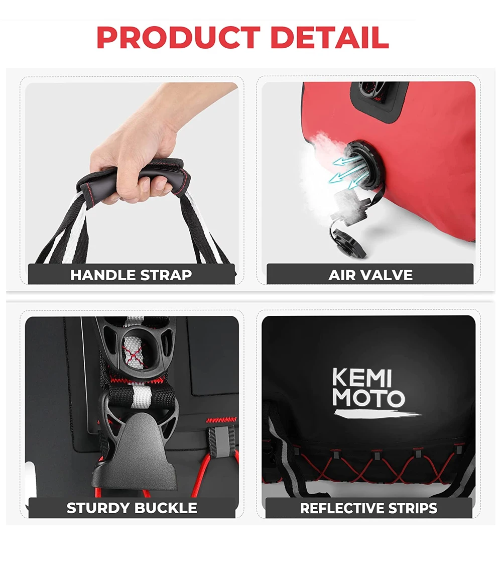 [ Large capacity and fixable ] - It can hold heavy winter warm items such as helmets, down jackets, windproof jackets, gloves, and hats. Motorcycle roll bag comes with 2 tightening straps and elastic hook straps, which provide anchor points when rowing, kayaking, rafting or riding a motorcycle, which can be locked.