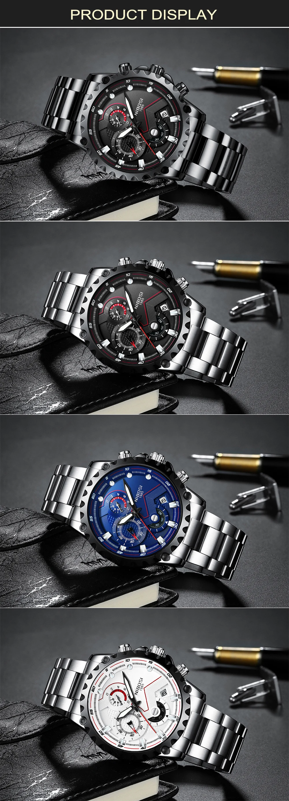 NIBOSI Herrenuhr Großes Zifferblatt Sportuhren Herrenmode Armeeuhr Herren Militäruhr Quarz Armbanduhr Relogio Masculino