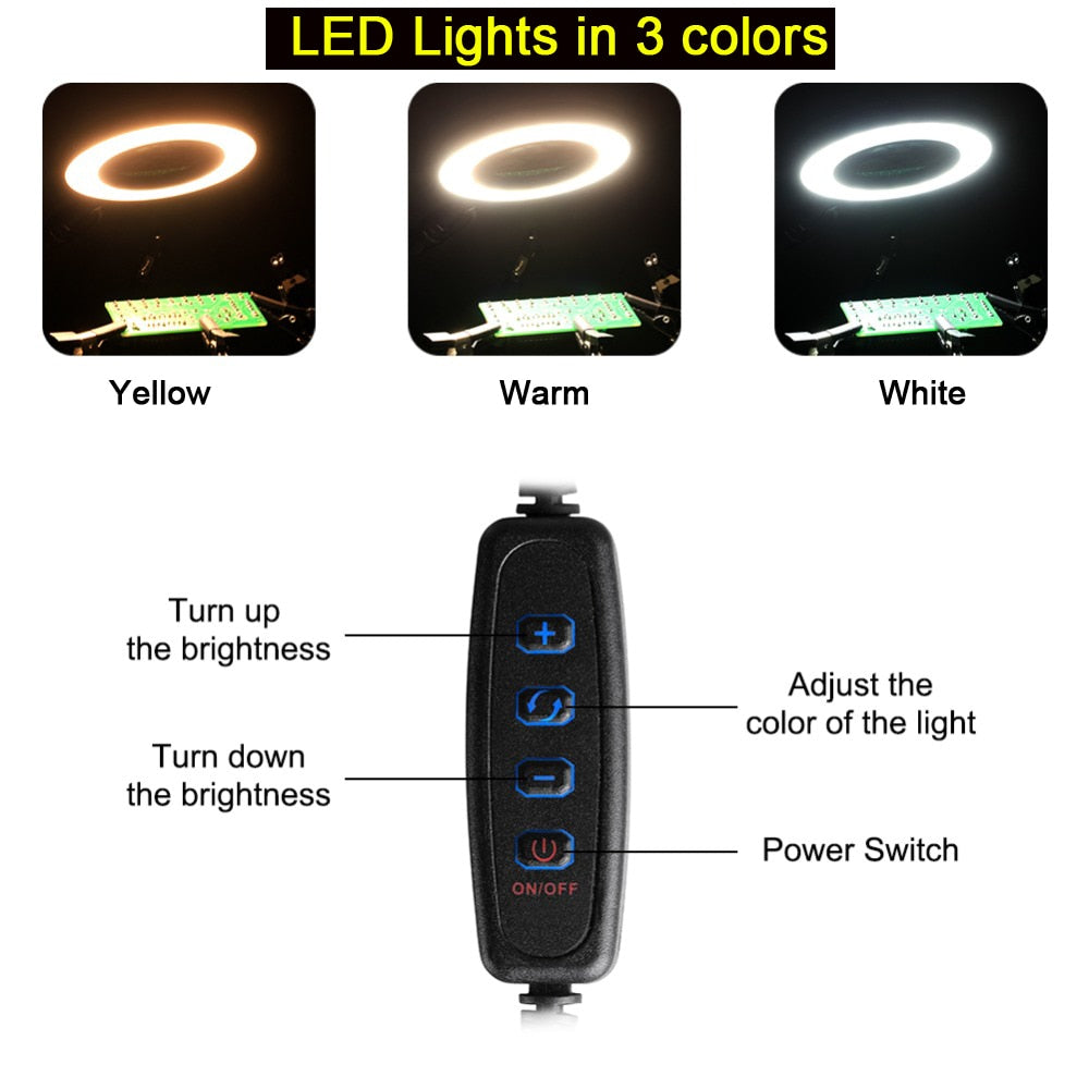 Toolour Multi Soldering Station Helping Third Hand Tool 3X USB LED Magnifying Glass Lamp USB Fan For PCB Welding Repair Station