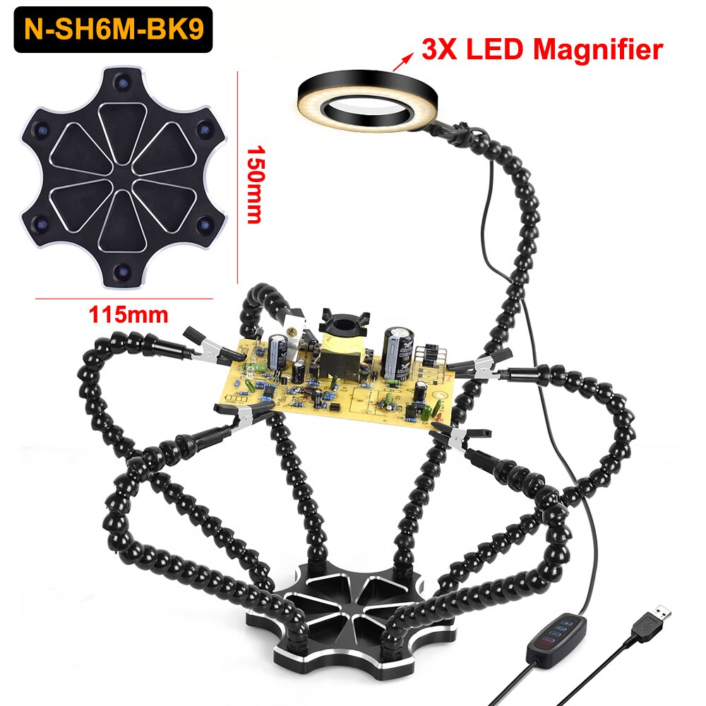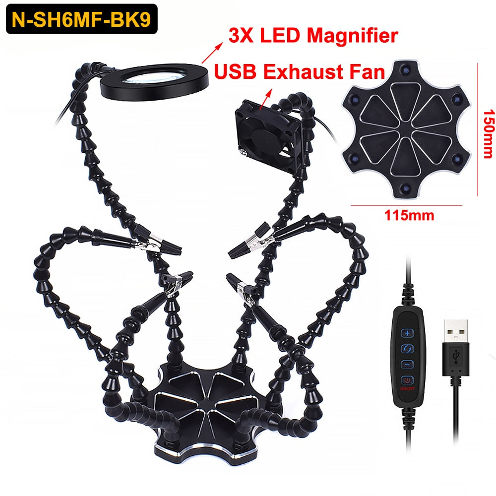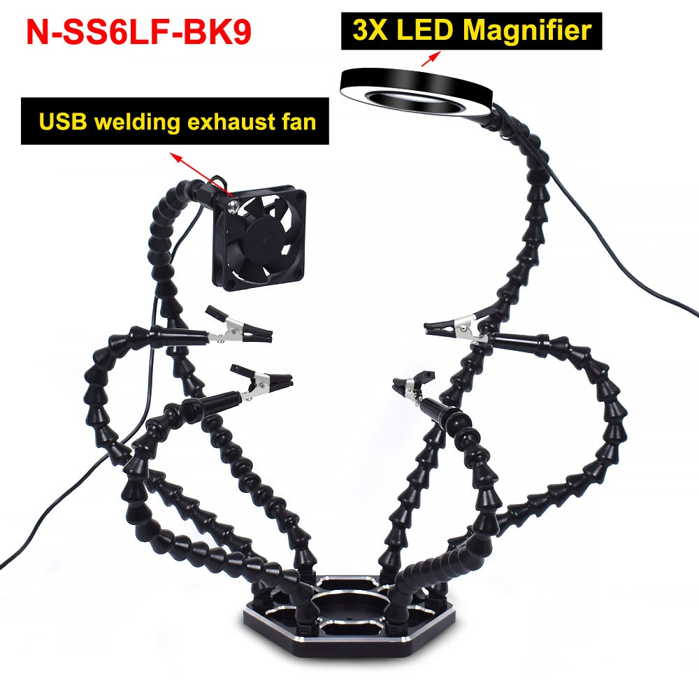 1.Six small flexible arms helping hands are easily positioned where you want them. Eliminates the frustration of traditional helping hands.