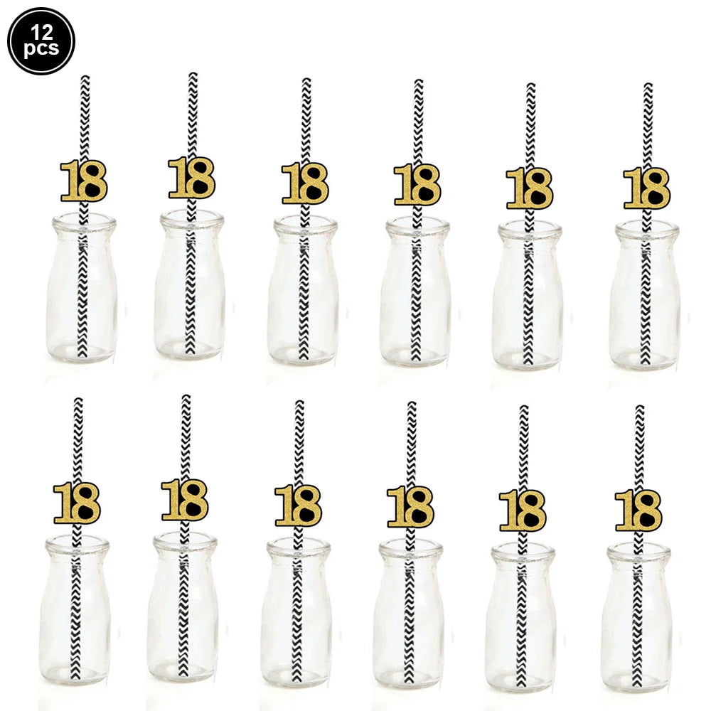 18th Birthday Party Disposable Tableware Plate Cup Napkin Black Gold Party Decorations Birthday Balloon 18 Years Party Supplies
