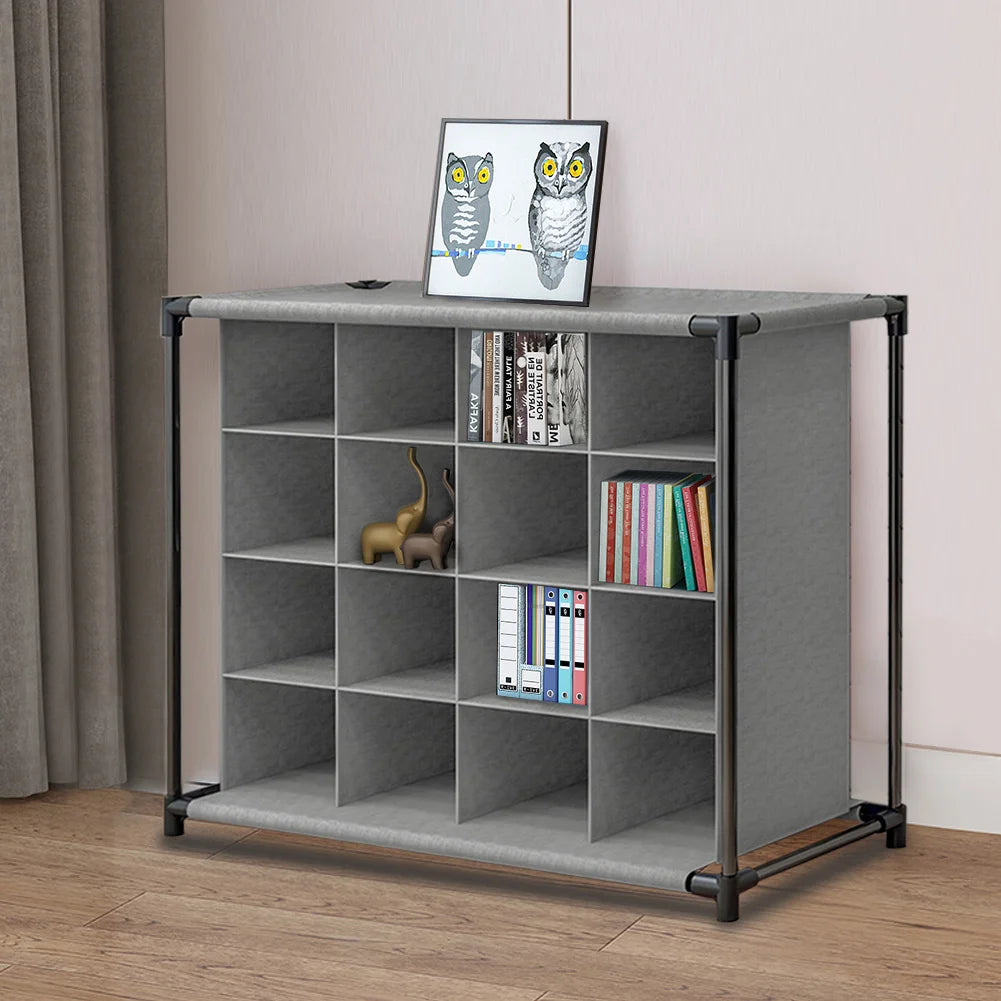 4 Tiers 16-Pair Non-woven Grid Shoes Rack Grey Cubes Storage Shelf Rack Organizers