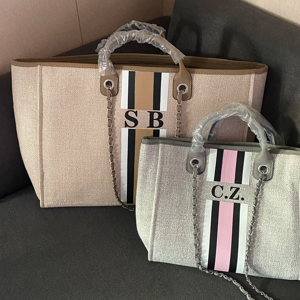 Personalised Chain Monogram Canvas Tote Bag Shoulder Bag Ladies custom bags for women chain Bridesmaids Gifts For Her