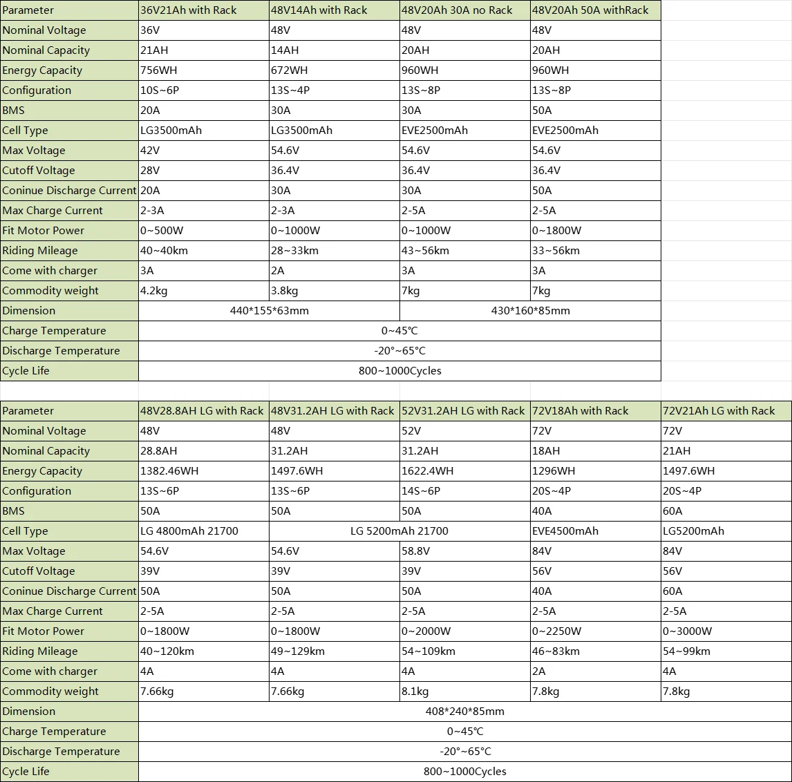 2) Factory direct store: All of our batteries is new from factory direct or within 3 months oversea warehouse stock , from 24V 36V 48V 52V 60V 72V all kind of battery you can see on our store, also support voltage/capacity/BMS/Size customized battery