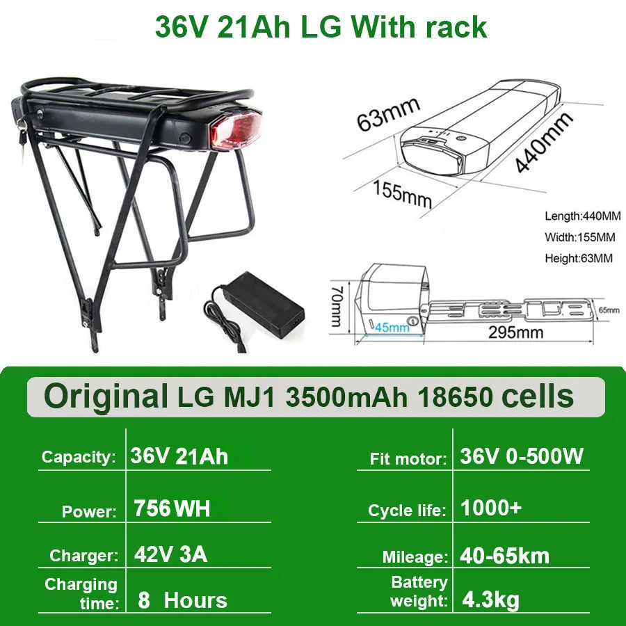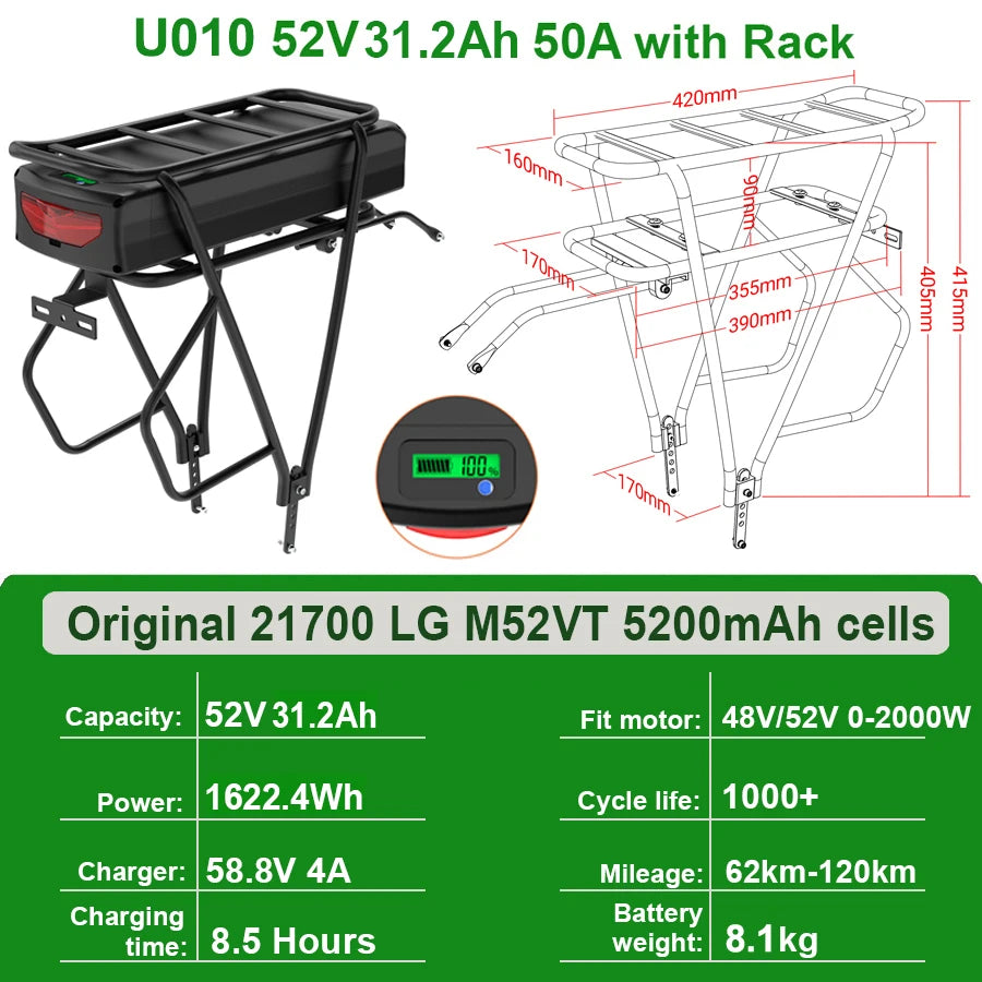 Rear Rack Ebike Battery Specs: