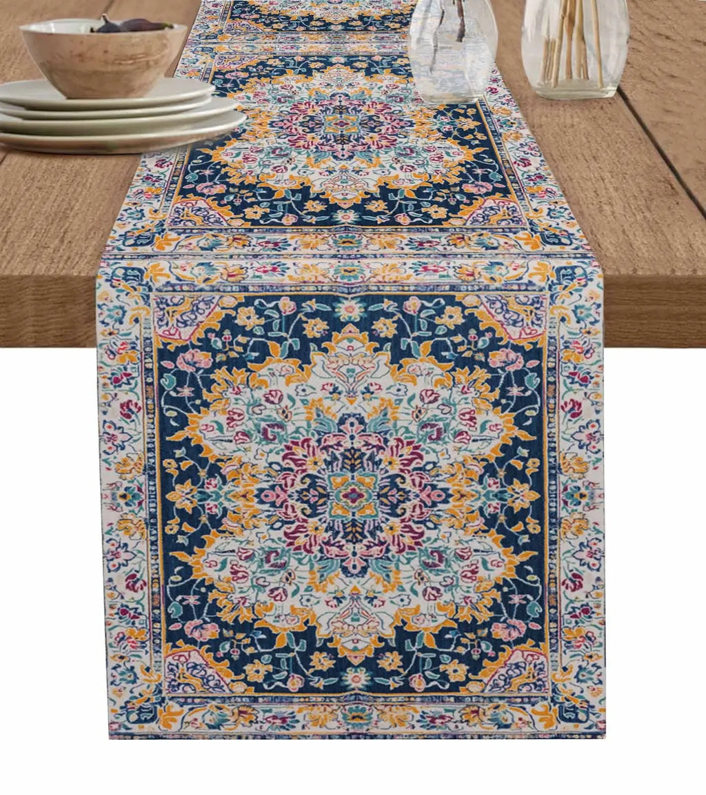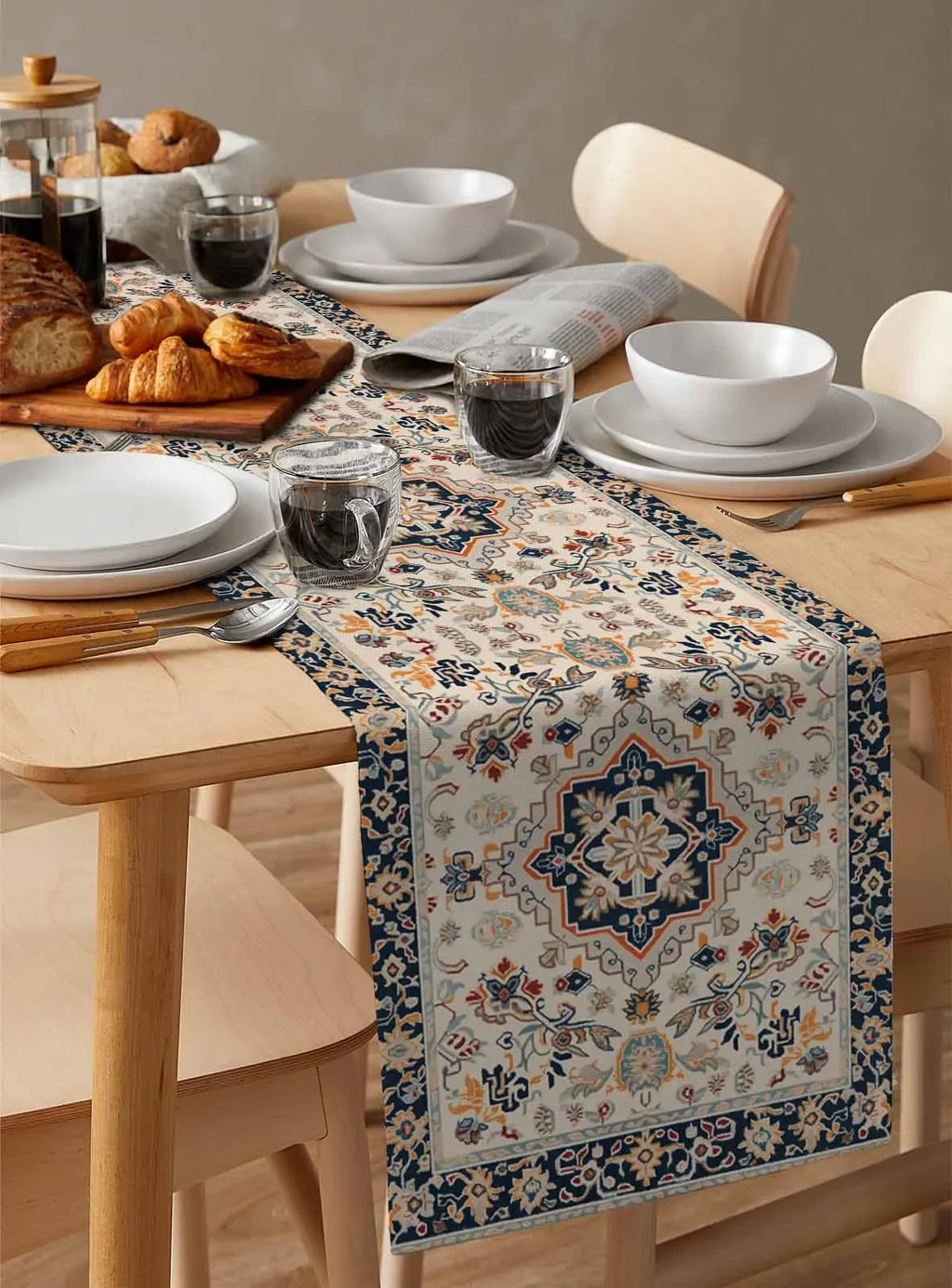 Retro Ethnic Persian Style Linen Table Runner Dresser Scarf Decor Reusable Kitchen Dining Table Runner Holiday Party Decorations