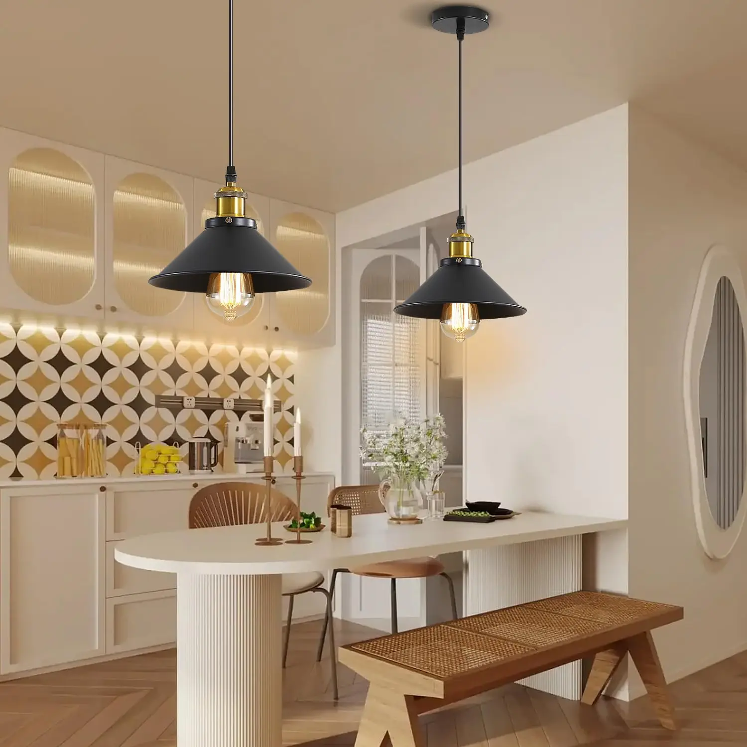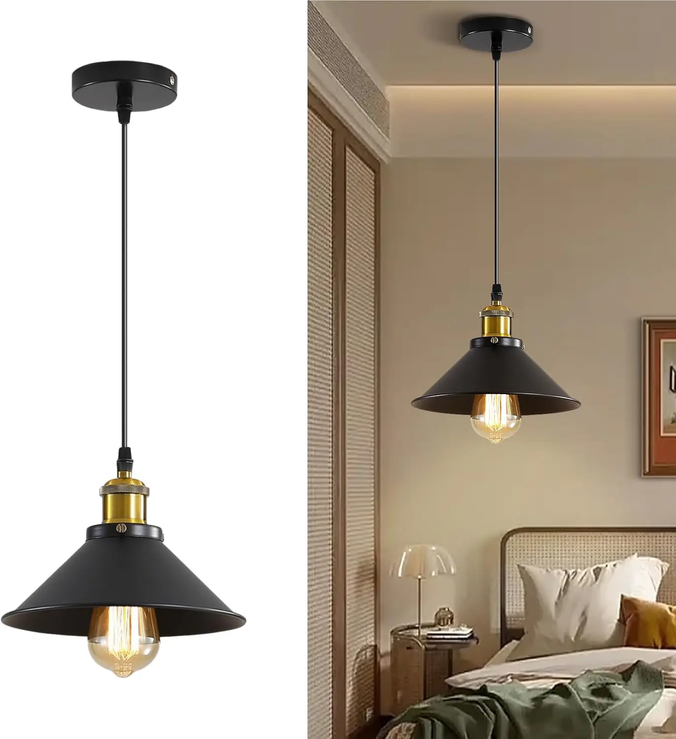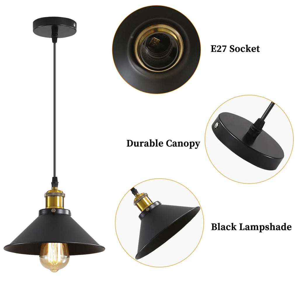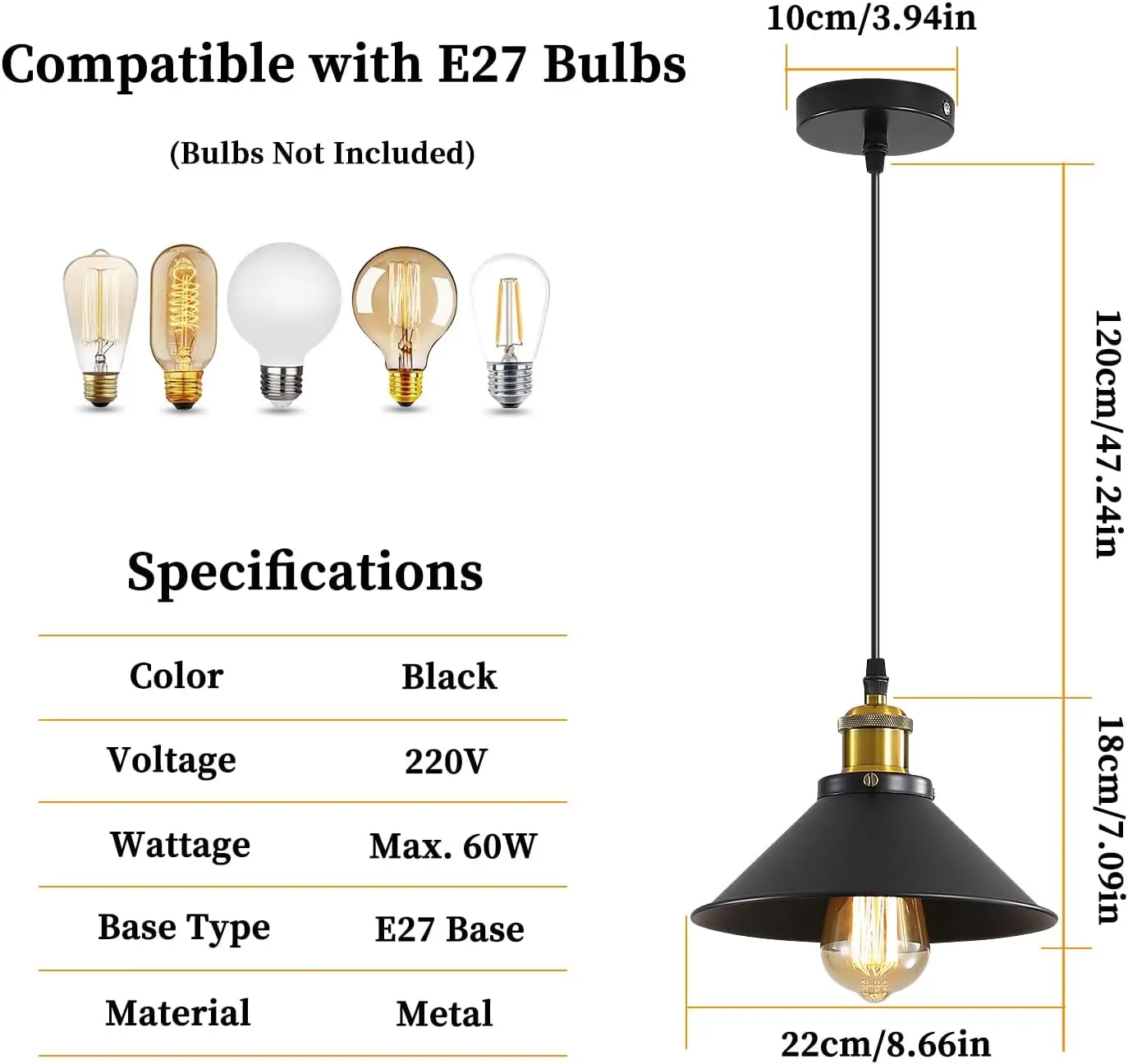 [Standard E27 Socket] - black bedroom kitchen ceiling light for kitchen island uses standard E27 sockets. Fits E27 bulbs under 60W including LED, incandescent, CFL and halogen. PS: It is compatible with dimmable bulbs and switches for a dimmable atmosphere. (Bulb and dimmer excluded)