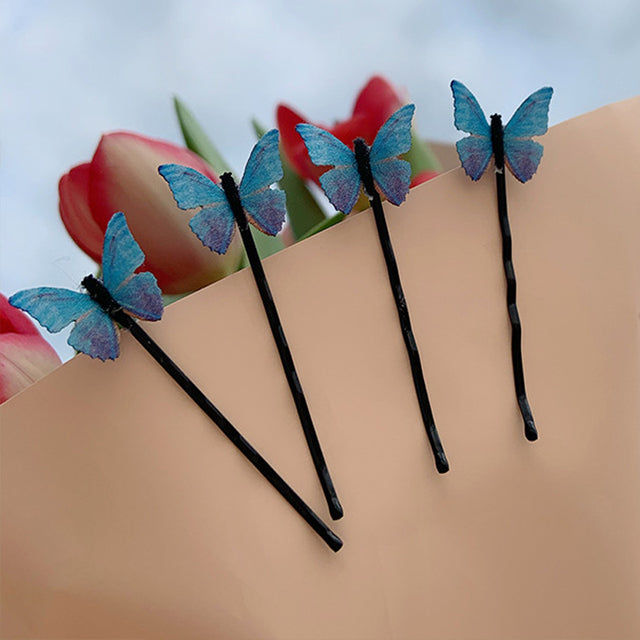 4pcs blau Schmetterling Haarnadel verträumt süße Seite Clip Haarschmuck Mädchen Pony Clip Haarnadel Wort Clip