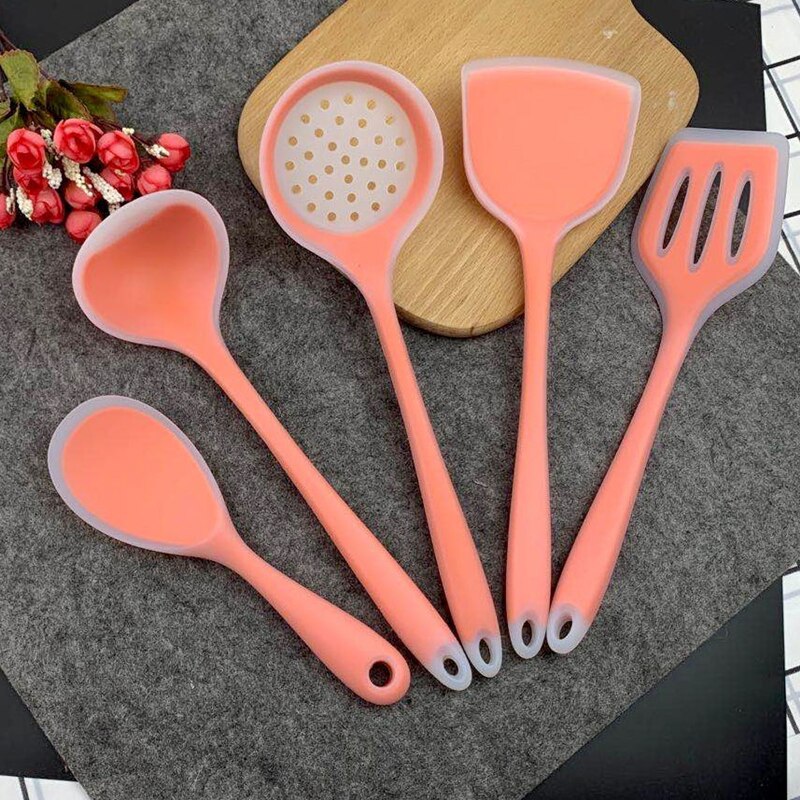 5pcs Silikon-Küchengeschirr-Antihaft-Kochgeschirr, das Werkzeug-Spachtel-Schöpflöffel-Schaufel-Löffel-Suppen-Küchen-Utensilien-Satz kocht Jetzt kaufen
