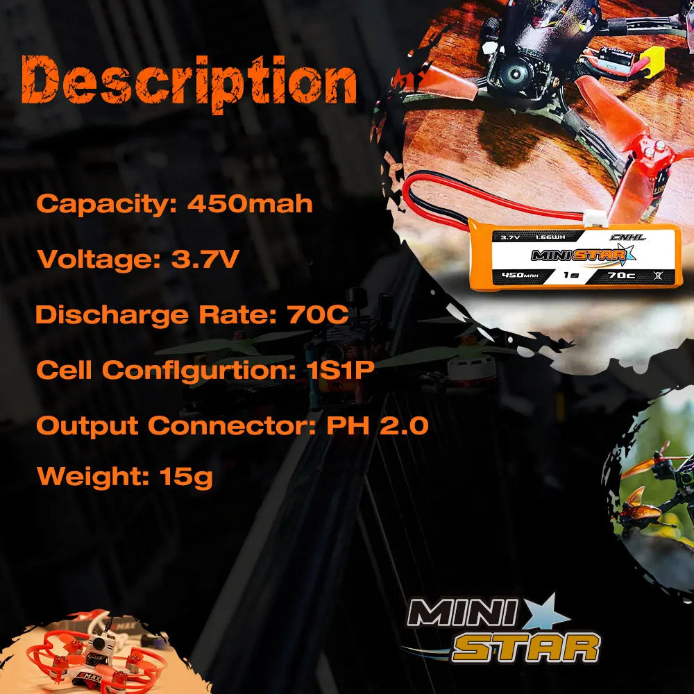 8PCS CNHL MiniStar HV 450mAh 3.8V 1S 70C Lipo Battery With PH 2.0 Plug for RC FPV Drone Mini Quadcopter Emax TinyHawk Happymo