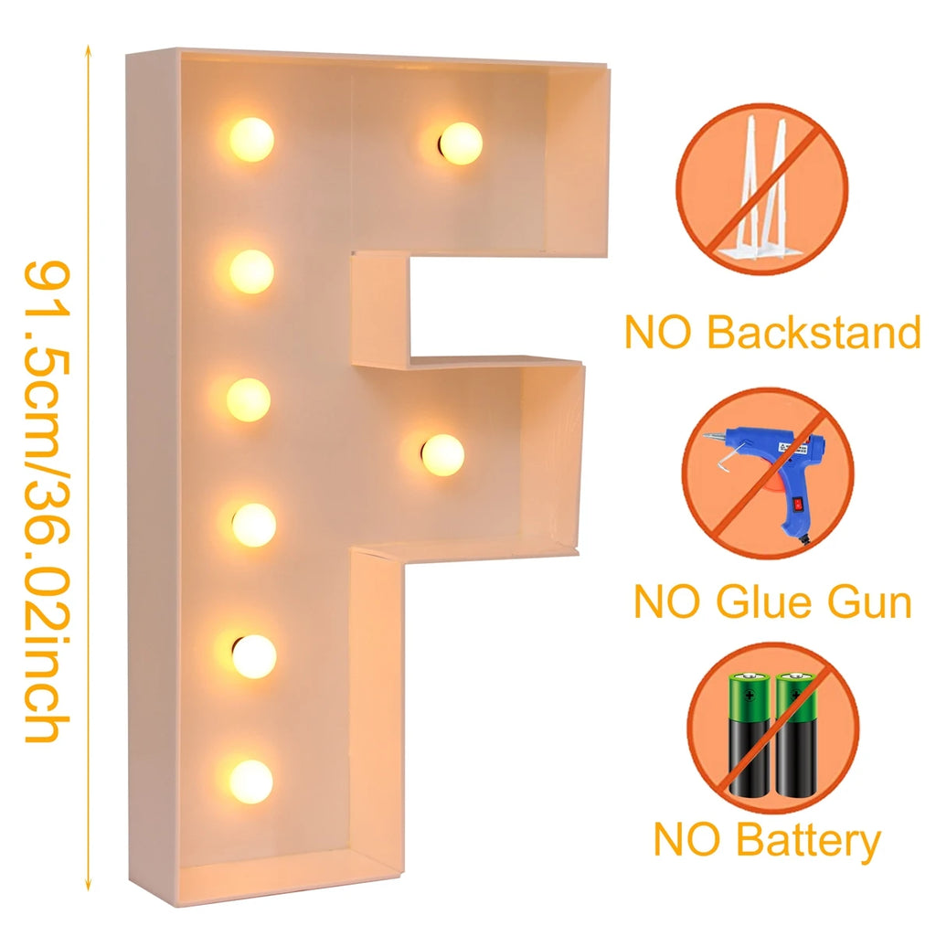 91.5CM DIY Name Giant Led Light Letter Frame Box Wedding Valentine's Day Party Decoration Anniversary Baby Shower Birthday Decor