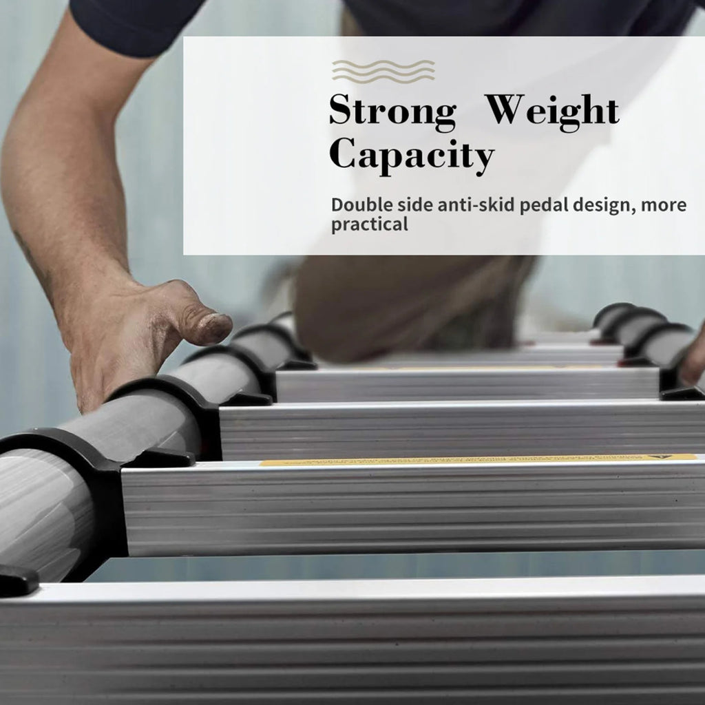DayPlus 5m Telescopic Ladder 16.4ft Multi-Purpose Aluminum Lightweight Folding ladder Non-Slip Extendable Sturdy Home Loft Tool