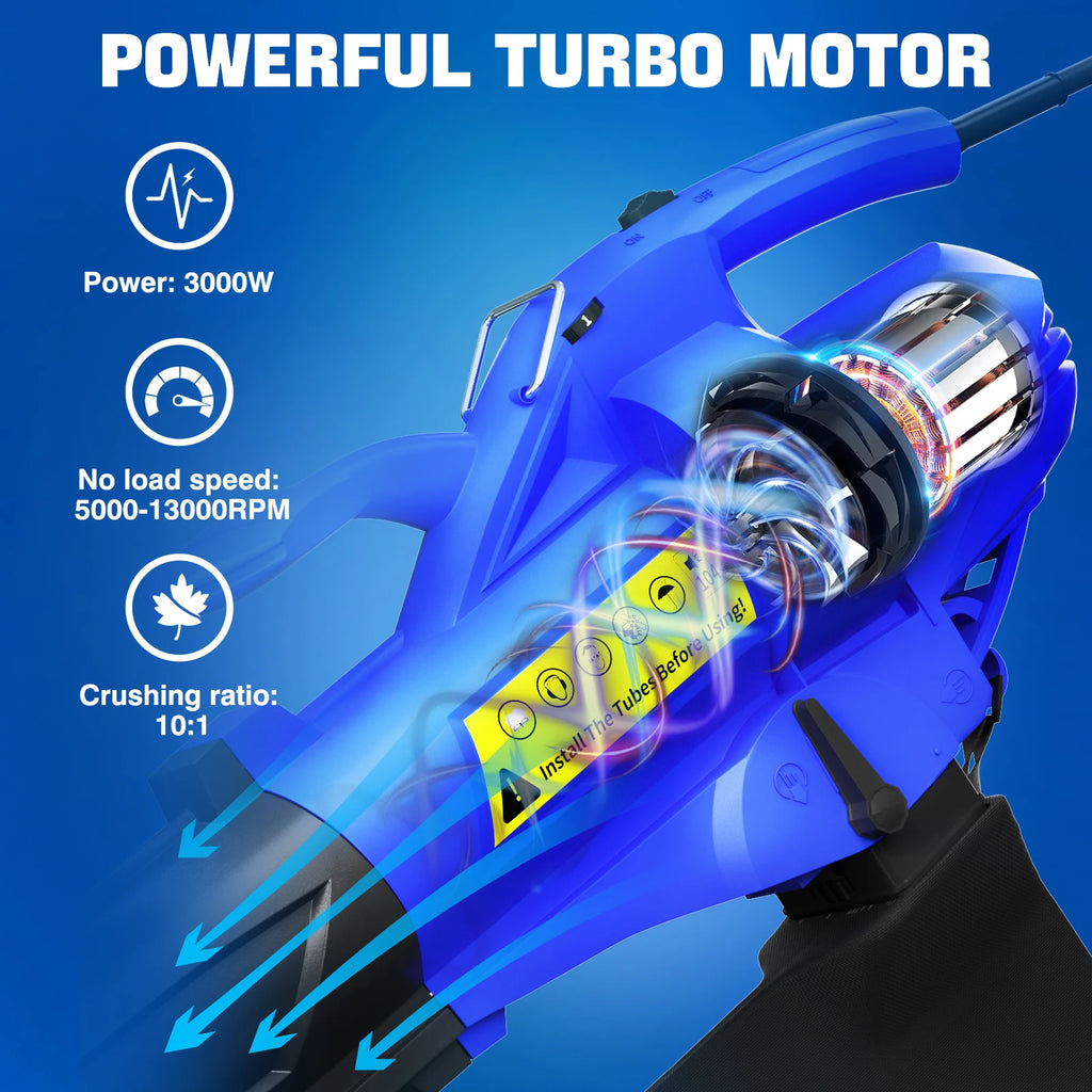 【Powerful Leaf Blower】---3000W Leaf Blower can quick and easy to clear leaves and grass, keeping your garden lawns, patios, driveways tidy.