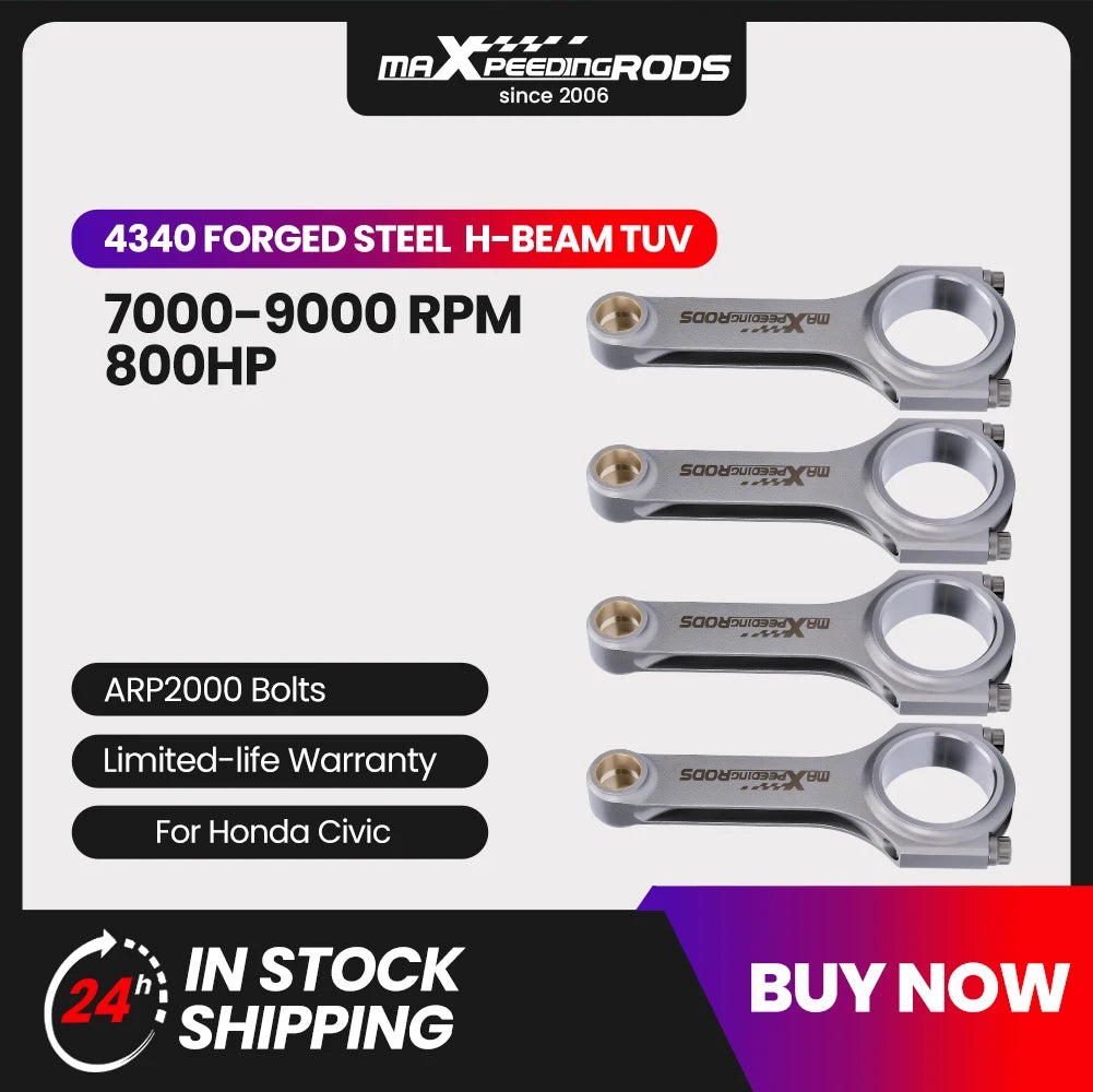 Forged EN24 4340 Connecting Rods +ARP Bolts for Honda Civic Si, CRX Si 1988–19 for CRX D16 D16A D16Y7 D16Y8 D16Z6 4PCS Conrod