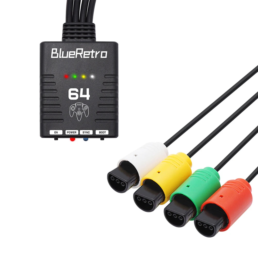 Feature: 1. BlueRetro Adapter: BlueRetro is a multi-person Bluetooth-compatible controller adapter for N64 console, which is an open source project based on darthcloud. It uses the popular ESP32 chip. It can support the original for Wii, for Switch, for PS3, for PS4, for PS5, for Xbox One console wireless handle. 2. Handle Pairing: Up to 4 Bluetooth-compatible handles can be paired at the same time. The multi-function reset button can be configured through the network Bluetooth-compatible port of Google Browser. 3. Zero Delay Use: It is almost zero delay, and the delay of using the PS4 and PS5 handles of Bluetro is less than 6 milliseconds. Support firmware updatable. 4. Scope of Use: Compatible for Wii, for Switch, for PS3, for PS4, for PS5, for Xbox One, for Joycon, for 8bitdo wireless handle. 5. Satisfaction Guarantee: We strive to provide each customer with the highest standard of customer service to ensure you have a pleasant shopping experience. If you have any issues, inquiries or need assistance, please feel free to contact us directly. Specification: Origin: Mainland China Product size: About 26x4.5x1.3cm/10.23x1.77x0.51inch Instructions: Plug connector description: Red: No. 1 handle Green: No. 2 handle Orange: No. 3 handle White: No. 4 handle BlueRetro LED Status: Red LED FULL ON: power on SYNC LED fully lit: Bluetooth fault SYNC LED off: Bluetooth connection succeeded SYNC LED flashing: searching for wireless controller BlueRetro button use RESET button: reset BlueRetro Pairing Button: Short Press: Disconnect all Bluetooth devices and start a new pairing. Press and Hold for 3 Seconds: enable Bluetooth query mode (new pairing). Hold for 10 Seconds: Restore the default configuration and clear the BT pairing key.