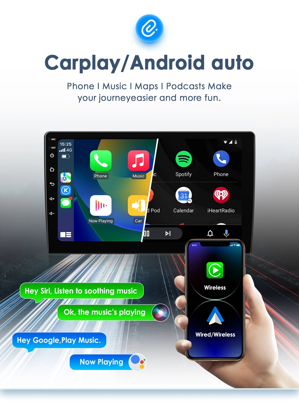 You can use some of your phone's features directly on the radio. For example: make/receive calls, mobile phone online maps, etc. Make your driving safer and more fun.