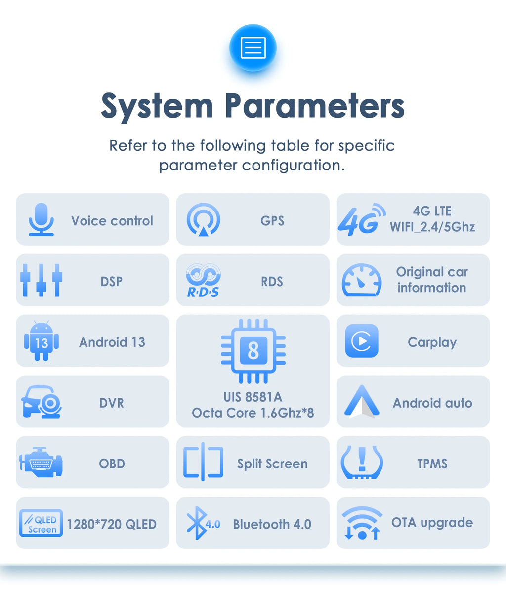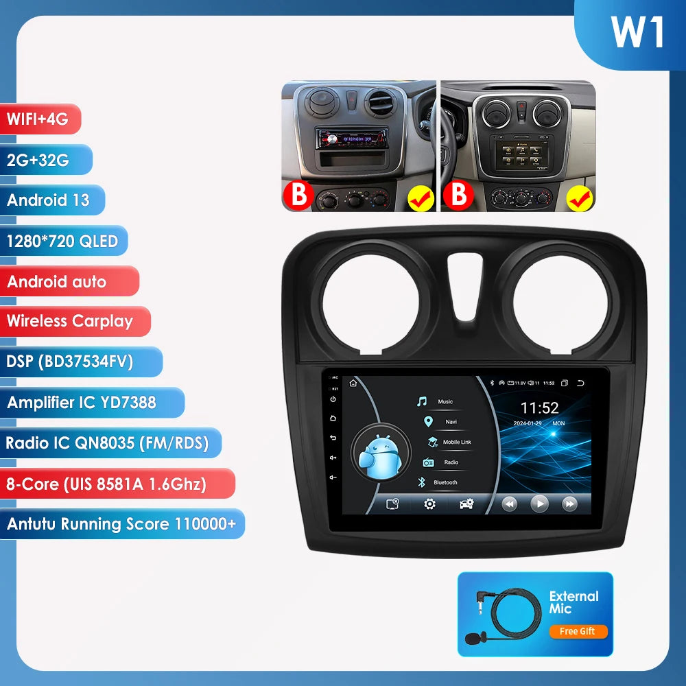 The radio has a built-in RDS function, especially for European users, it automatically selects the stable frequency of the radio station being listened to, Receive more stable radio station, Less radio noise, Higher performance during driving
