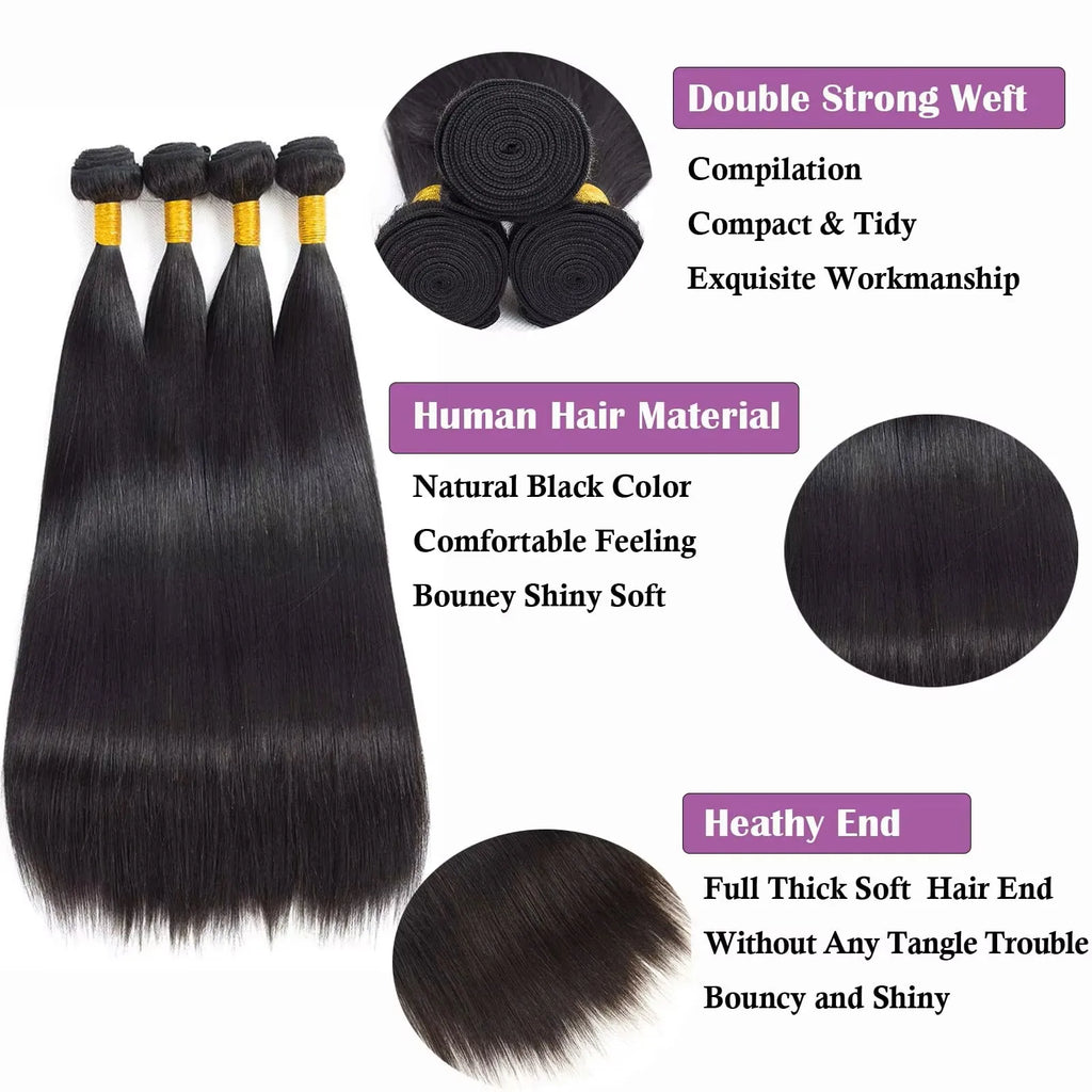 Human Hair 3/4 Bundles 40 Inch straight Bundles Human Hair Brazilian Hair Weave Bundles Human Hair for Women Extensions