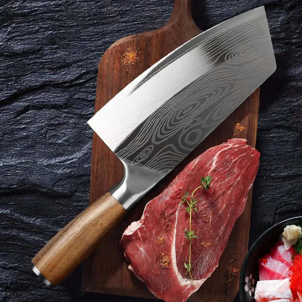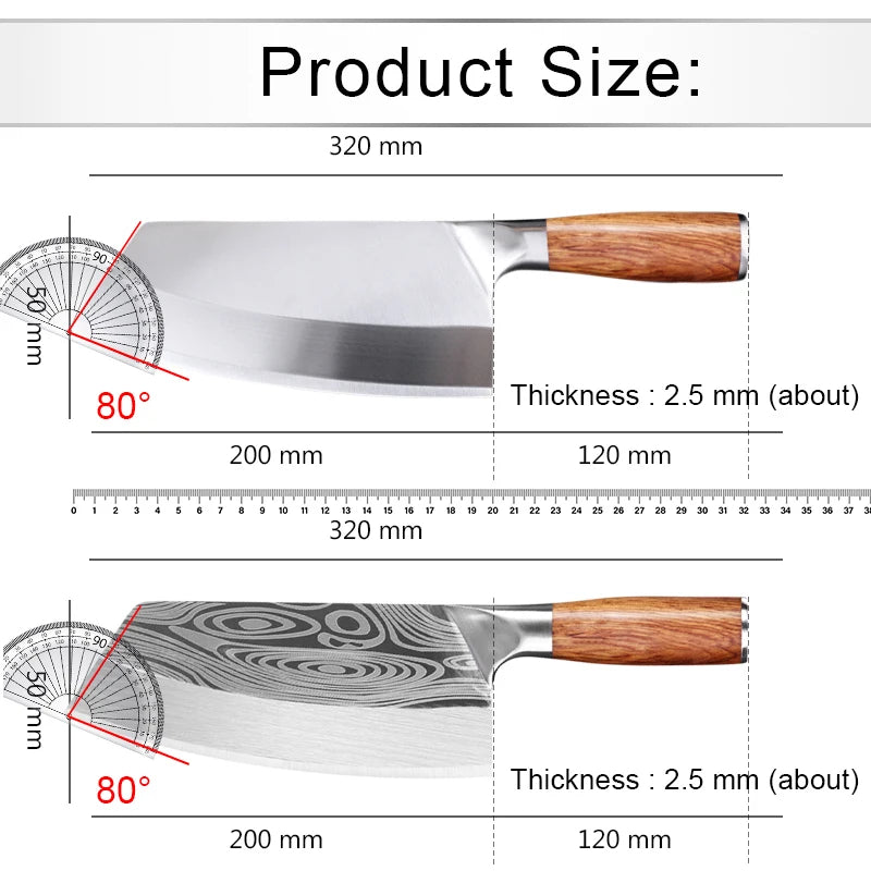 Professional Cleaver Knives Heavy Duty Chinese Knife Wooden Handle Laser Damascus Knife Cleaver Meat Chicken Fish Kitchen Knife