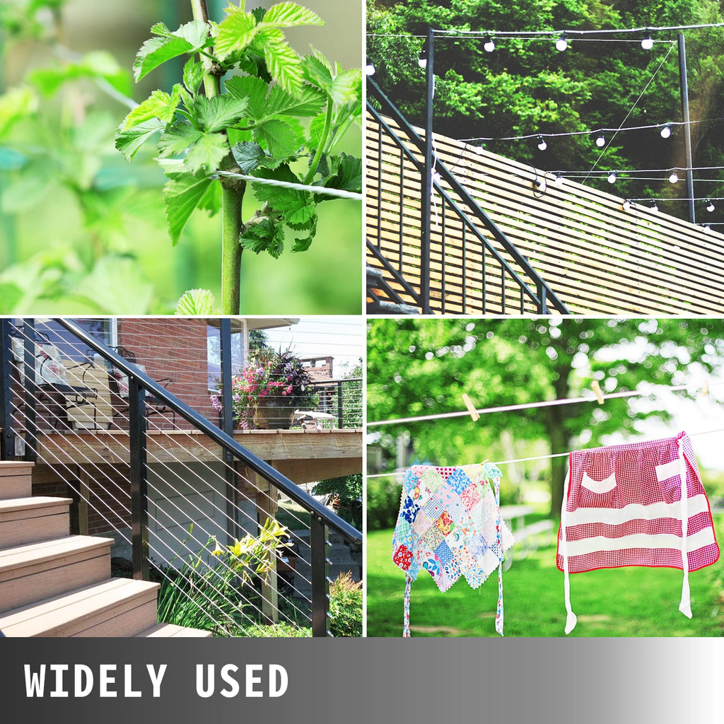 • Broad Applications: Get ready to take control of any space! Perfect for indoor and outdoor use. The 500ft stainless steel cable meets all your daily needs! The go-to choice for deck railing, garden fencing, supporting your plants, hanging birdfeeders, string lights, clotheslines, etc. Add some freshness to your life with thiswith SucceBuy wire rope.