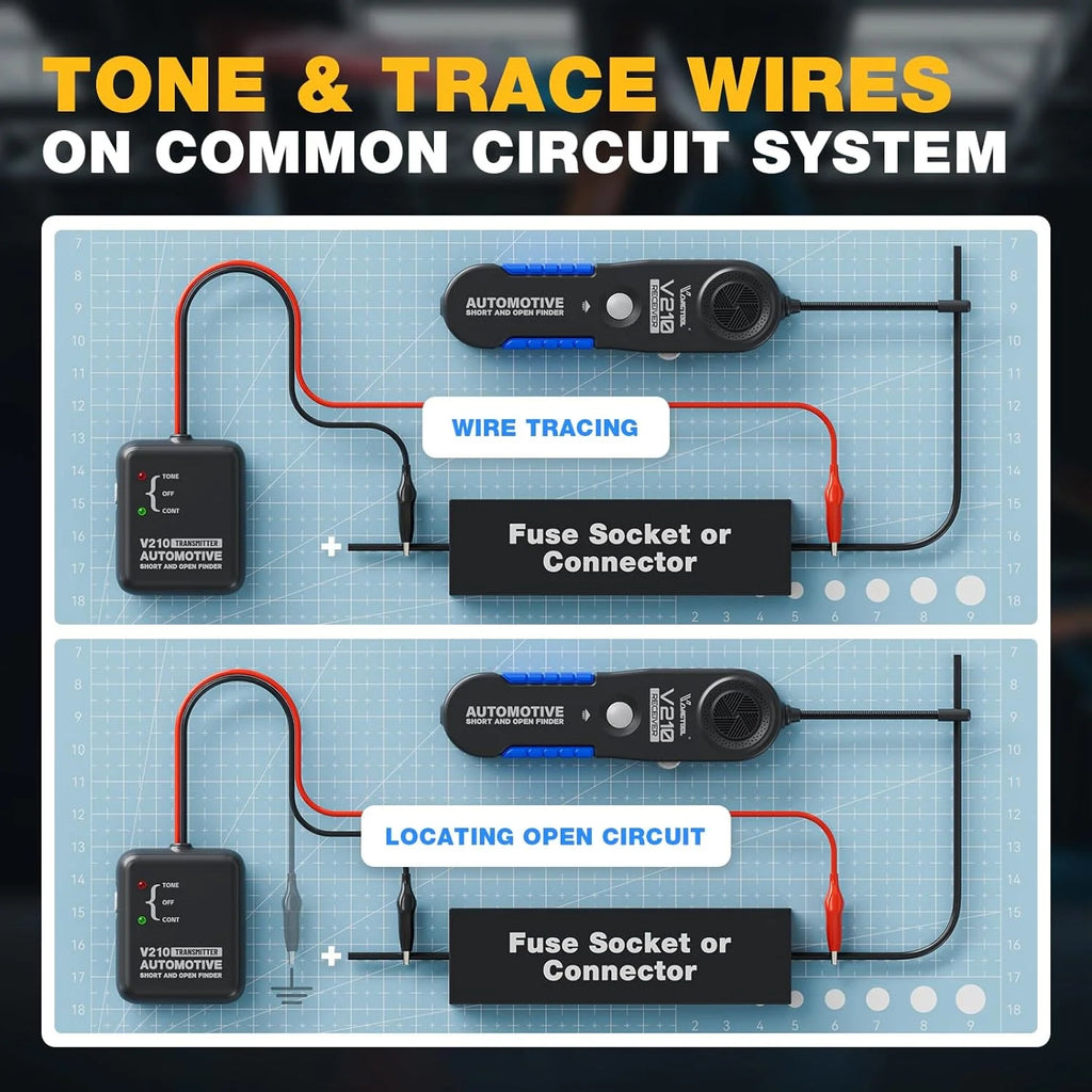VDIAGTOOL V210 Automotive Wire Tracer and Short Circuit Finder, Designed to Work With 6-42V DC Electrical Systems.