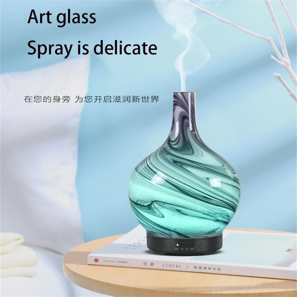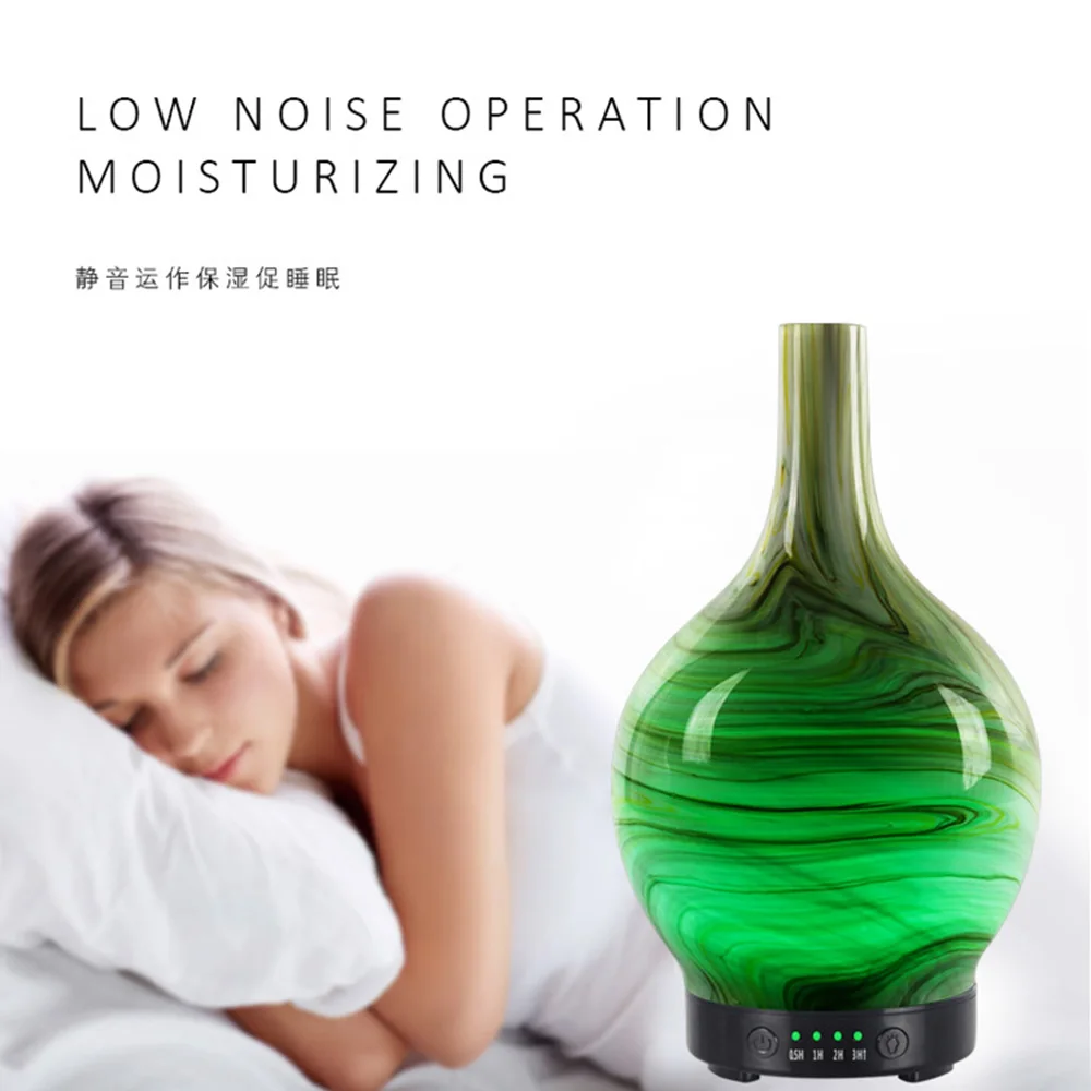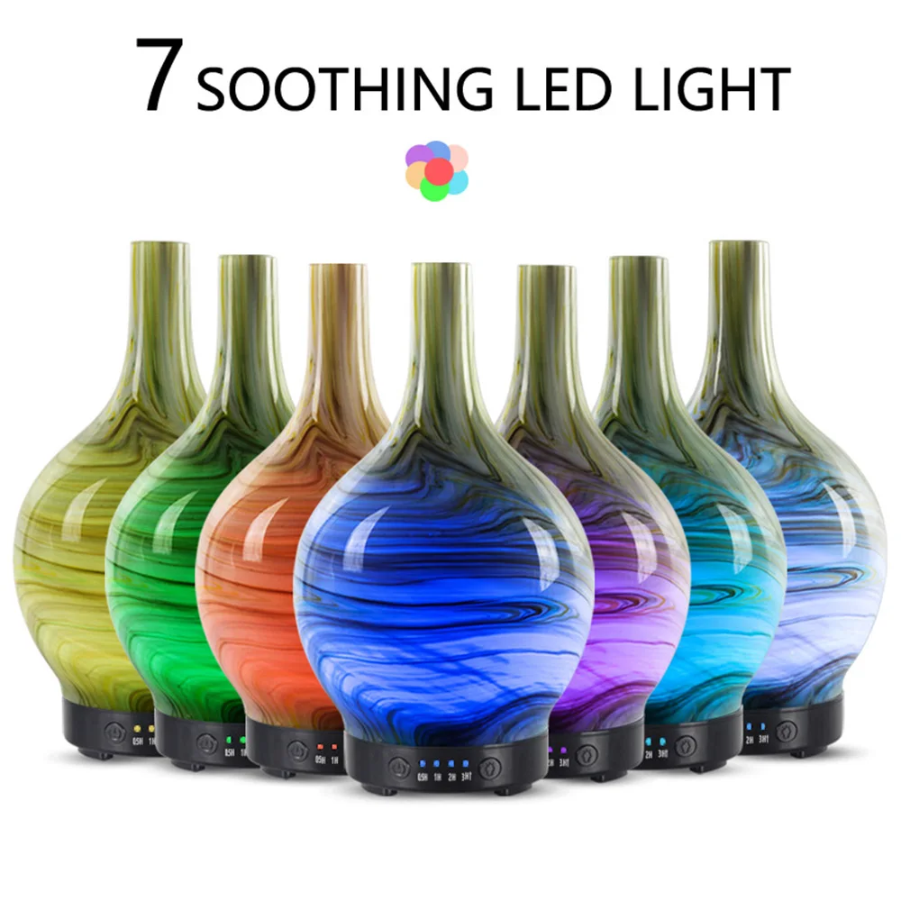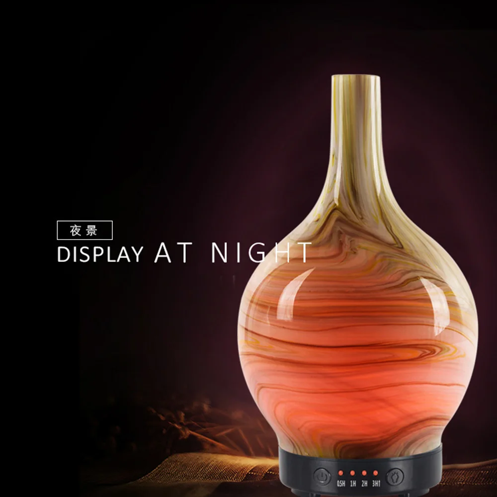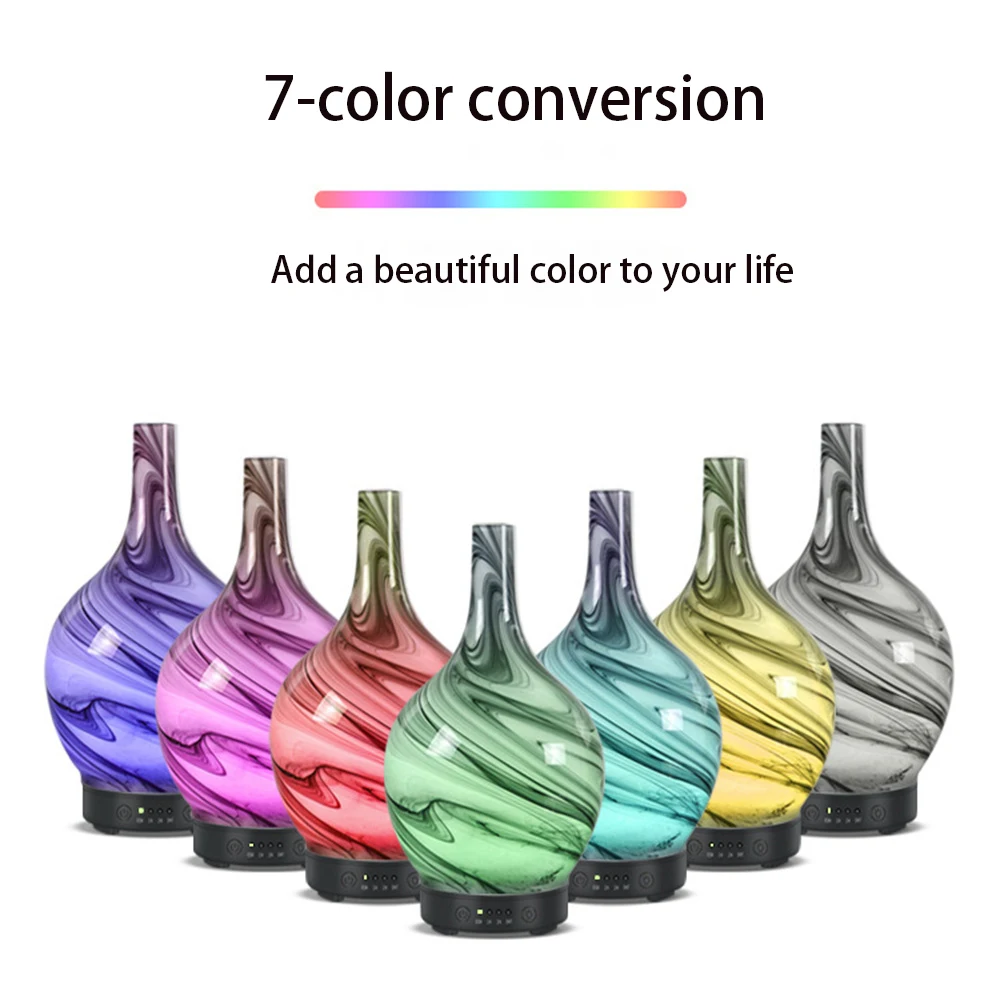 100ml Aromatherapy Essential Oil Diffuser Glass Marble Design Handmade Cool Mist Humidifier Waterless Auto Shut-Off with 4 Time Setting and 7 Color Changing Light for Home Deco Office Spa Yoga