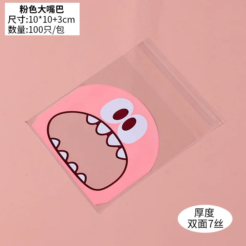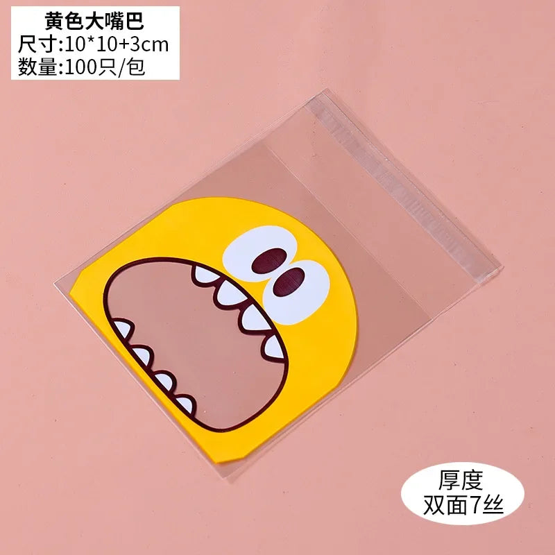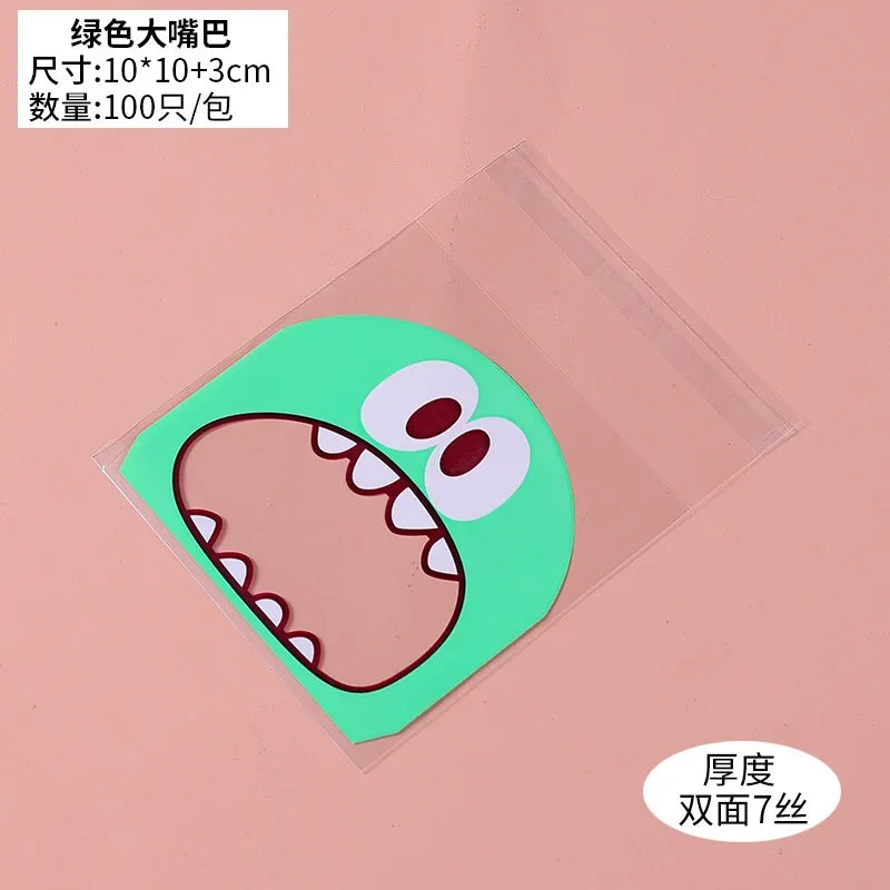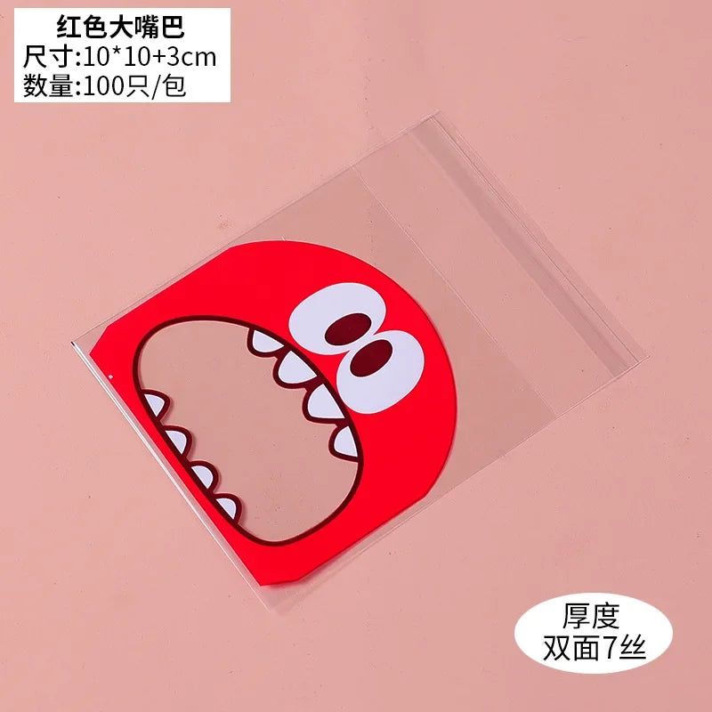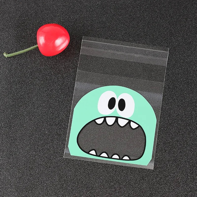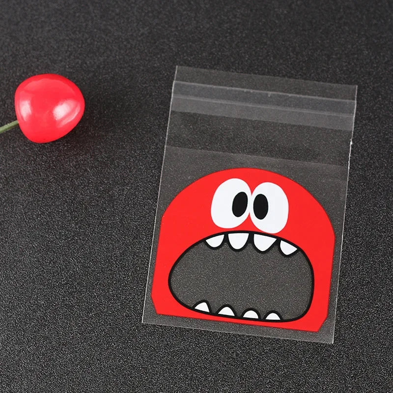 100pcs Cute Monster Sharp Teeth Plastic Bags Xmas Gift Packaging Bags Wedding Candy Bag OPP Bags Birthday Easter Party Decor