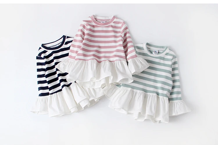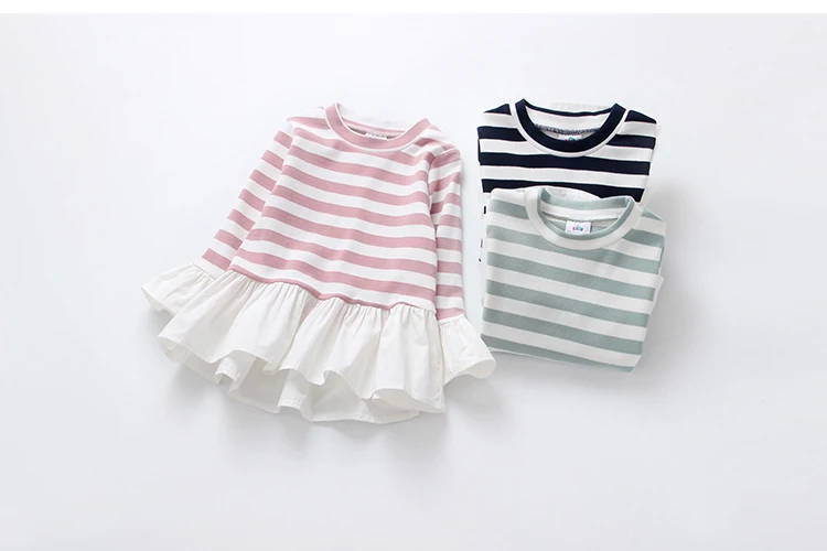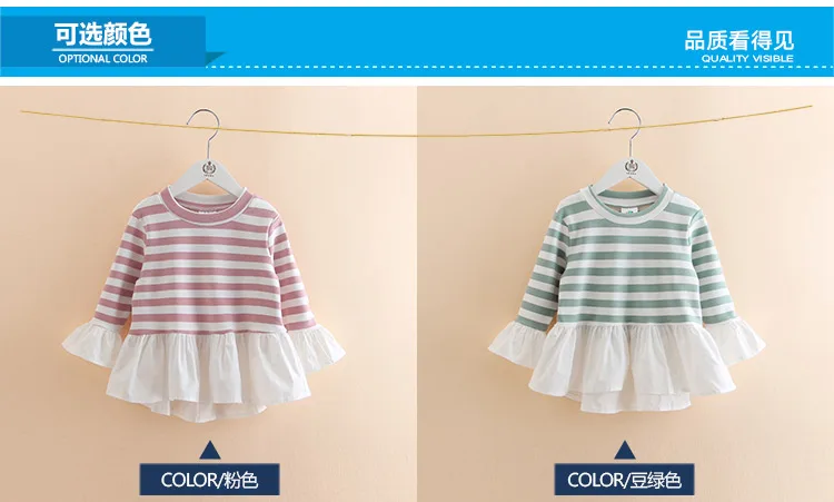Nombre clave : camisetas de algodón con retazos de encaje a rayas para bebés y niñas