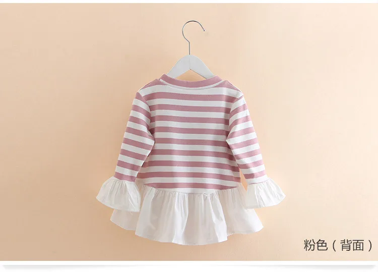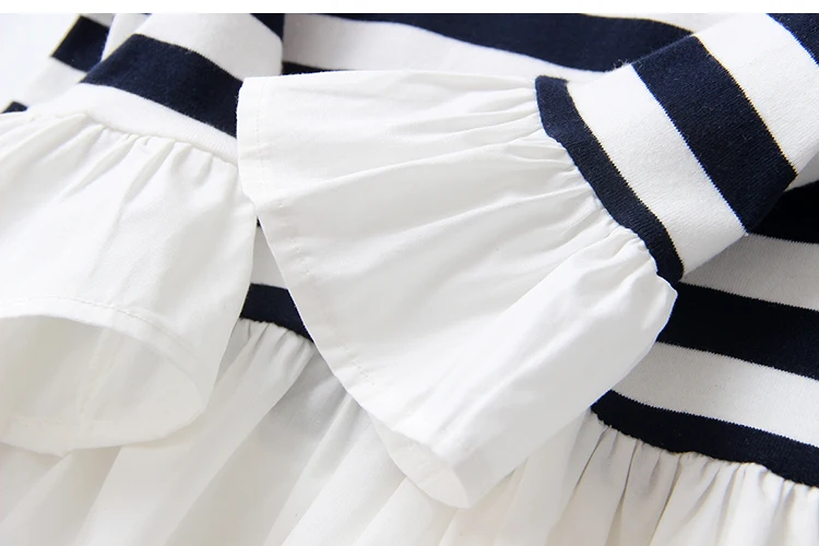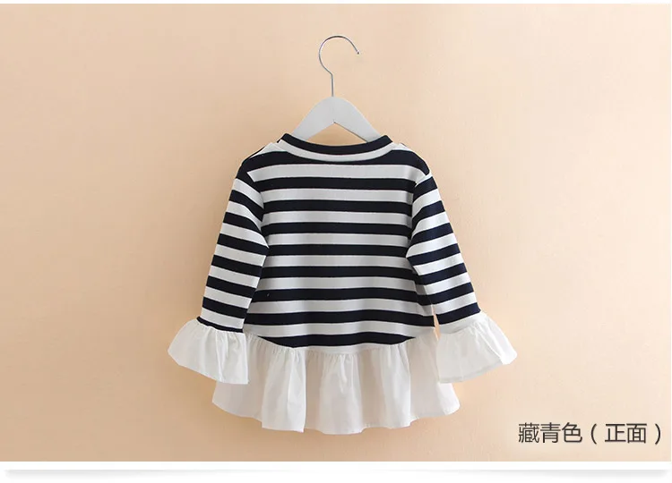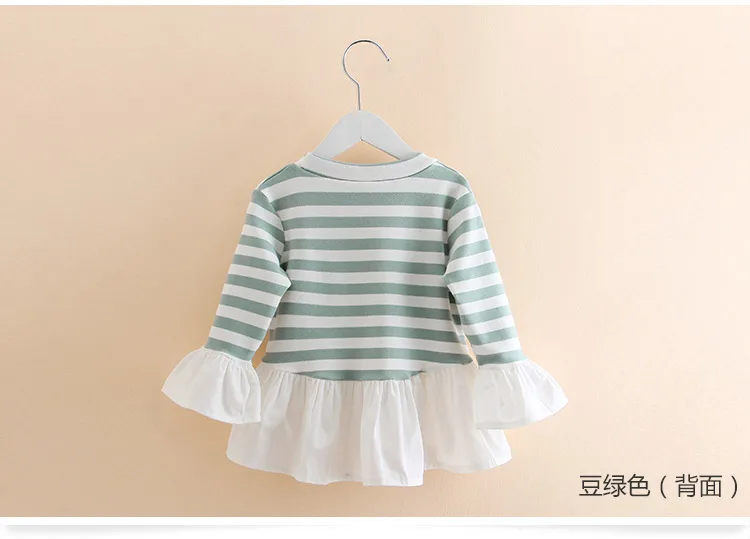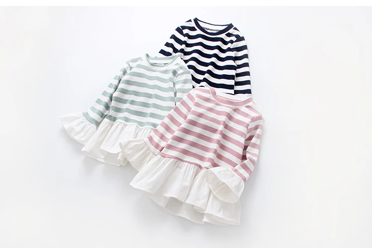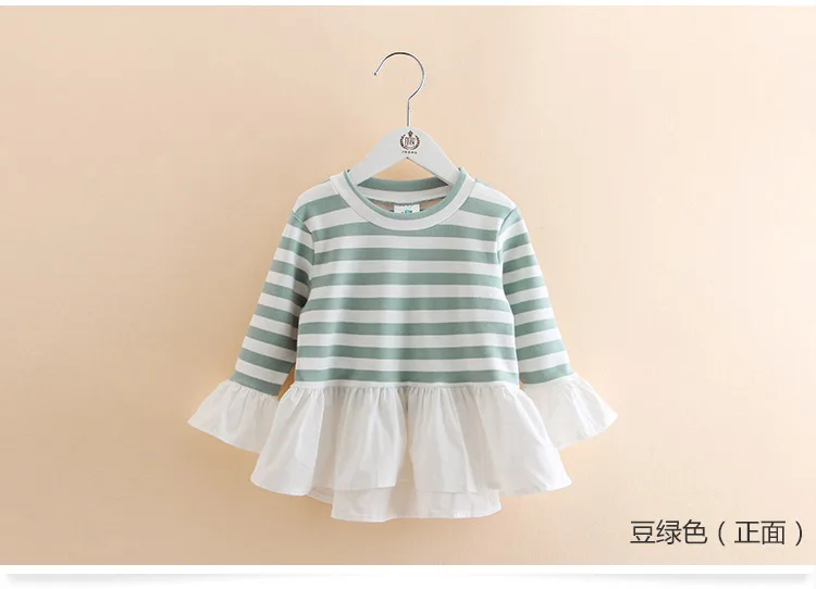 Moda de primavera 2021, camisetas para niños de 2 a 10 años, camisetas con cuello redondo de manga larga a rayas de encaje de retazos de algodón, camisetas de otoño para niñas