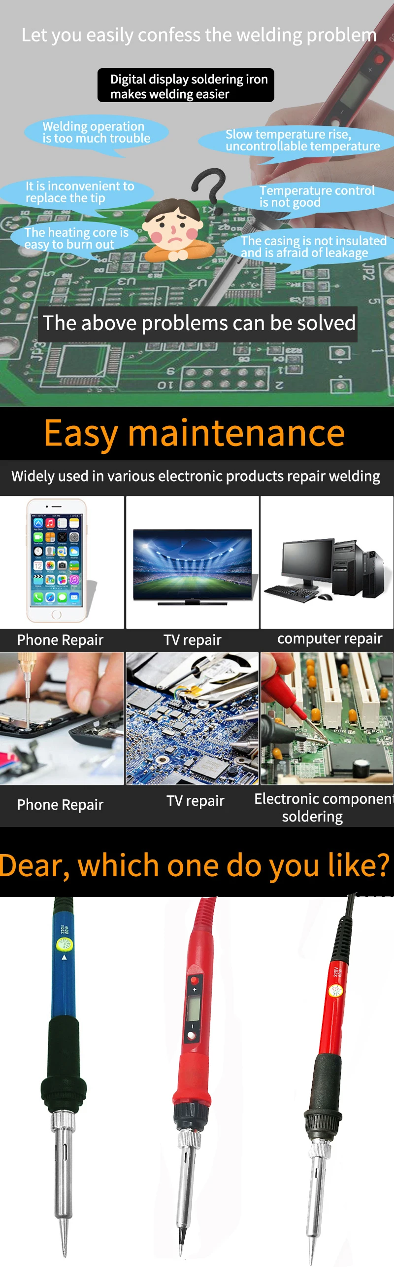 Soldador eléctrico de 60W/80W, temperatura ajustable, 220V, 110V, pantalla Digital LCD, herramientas de estación de retrabajo de soldadura de hierro