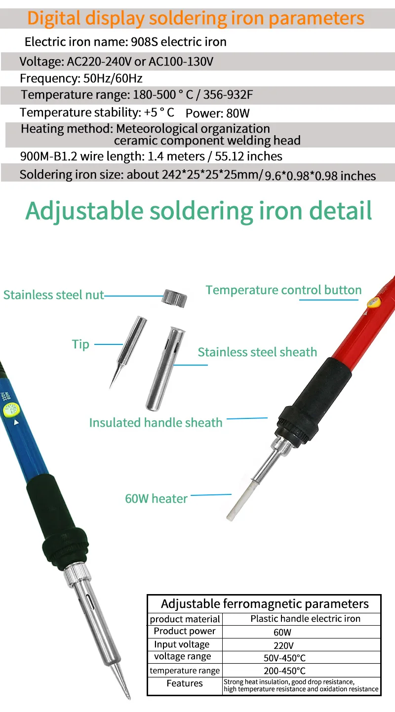 Tamaño del soldador: aprox. 242*25*25mm/9,6*0,98*0,98 pulgadas