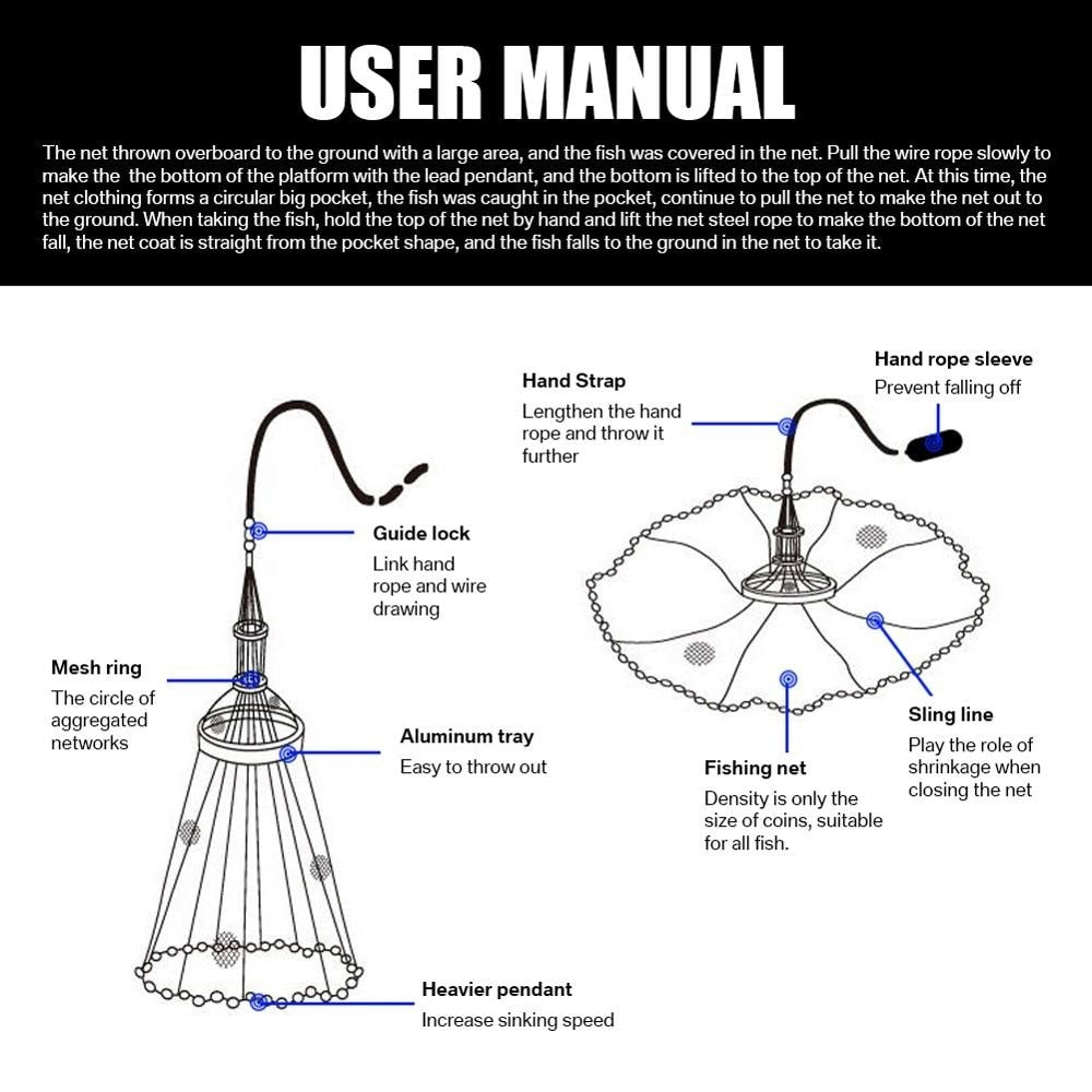 -   Package:1*Cast Net+1*Bait Net