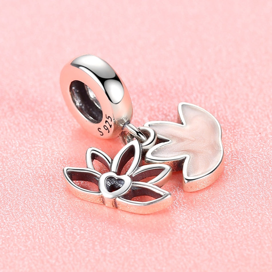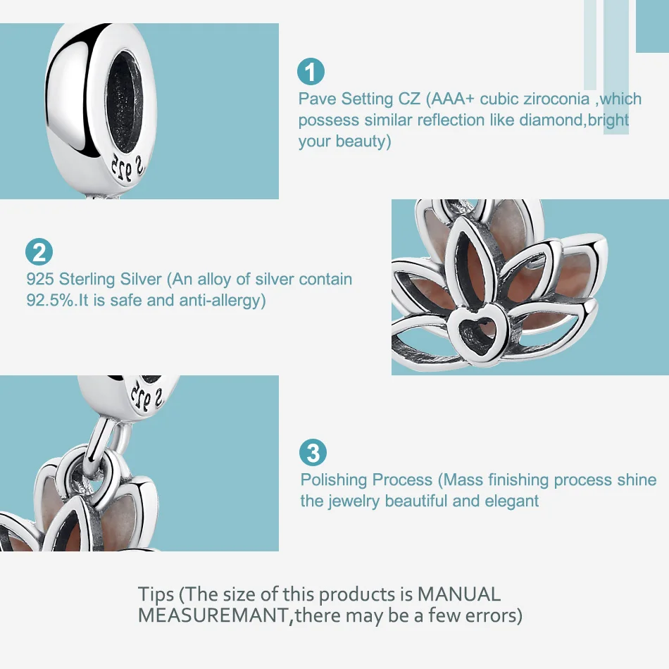 Diseño : Dije colgante de flor de loto de esmalte rosa