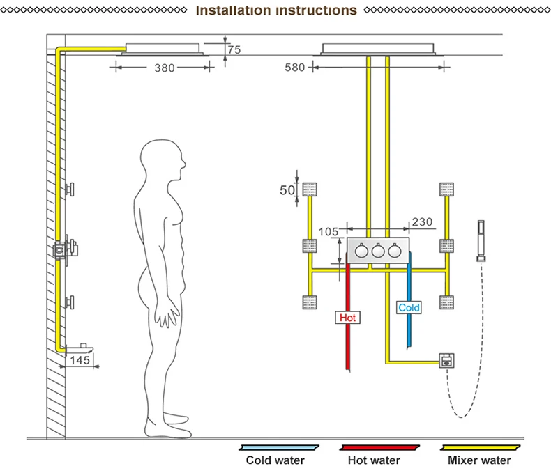 Chorro de cuerpo de ducha : tamaño de 2 pulgadas, función de lluvia