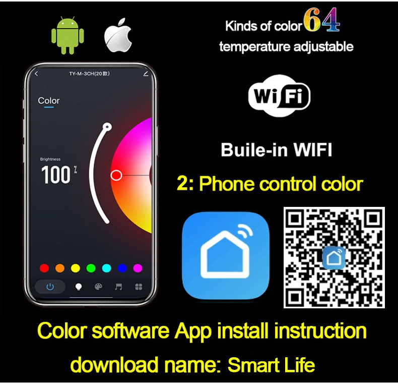 Color de luz LED : luz LED de control remoto o control de teléfono o panel de control