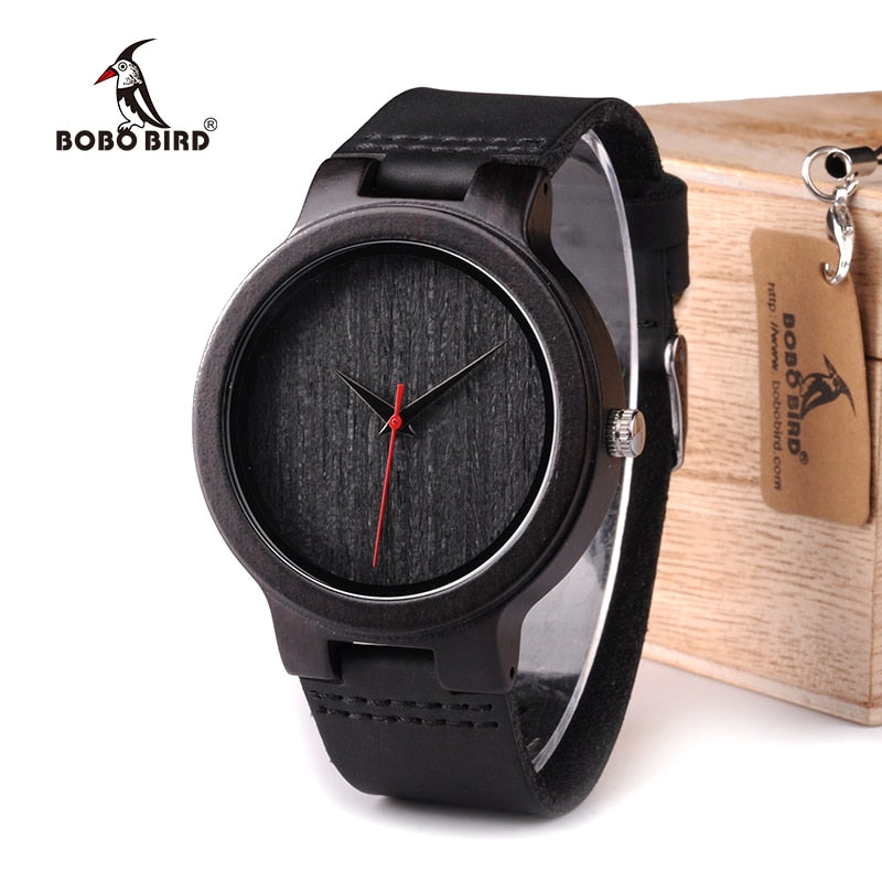 BOBO BIRD WC22 Ebony Wood Watch With Red Pointer Leather Band Japan Miyota 2035 Movement Quartz Watches For Men Women