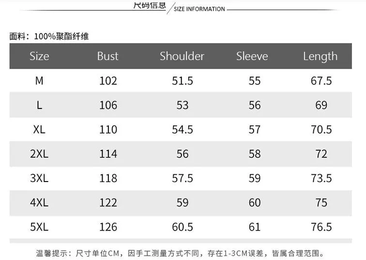 Tamaño : ML XL 2XL 3XL 4XL 5XL