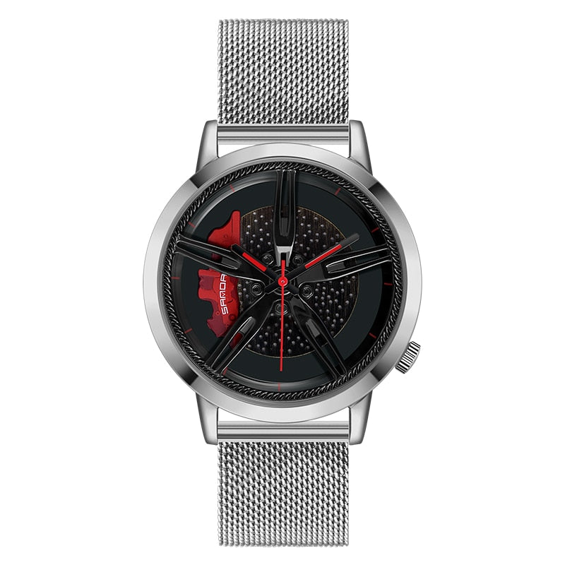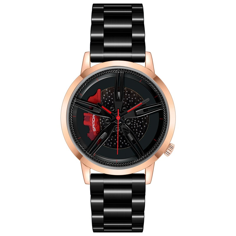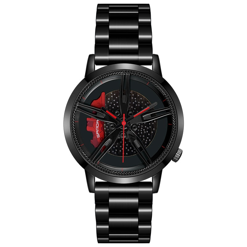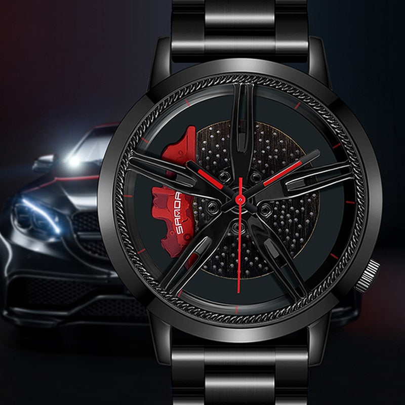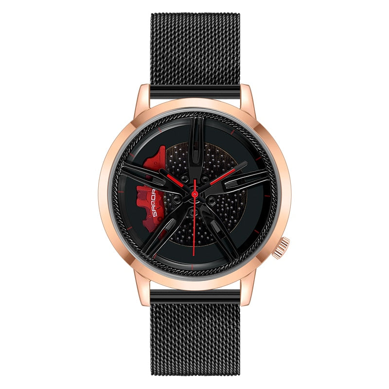 Reloj para hombre, llanta de rueda de coche, esfera de cubo, reloj de pulsera para hombre, relojes impermeables negros de malla de acero inoxidable, reloj Masculino