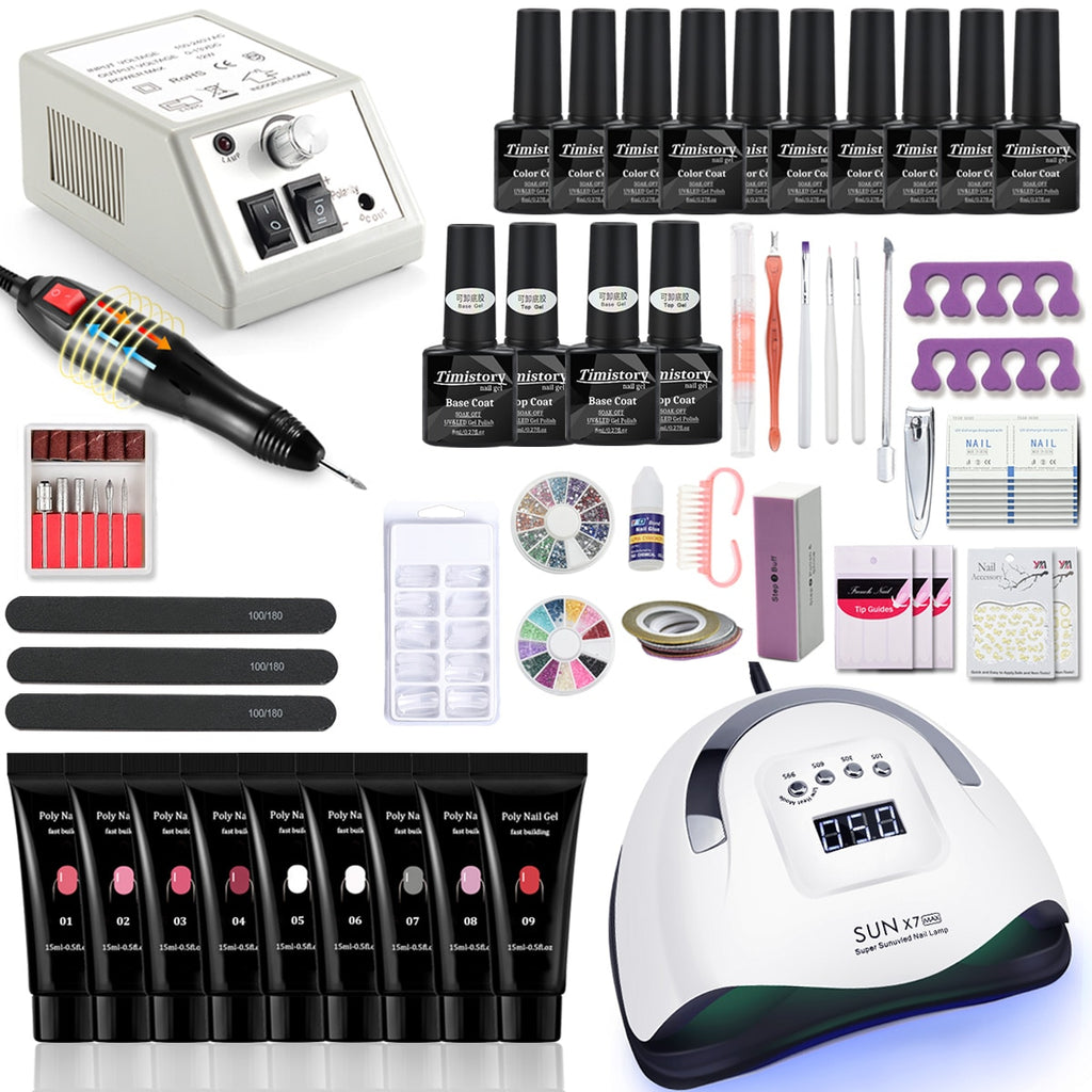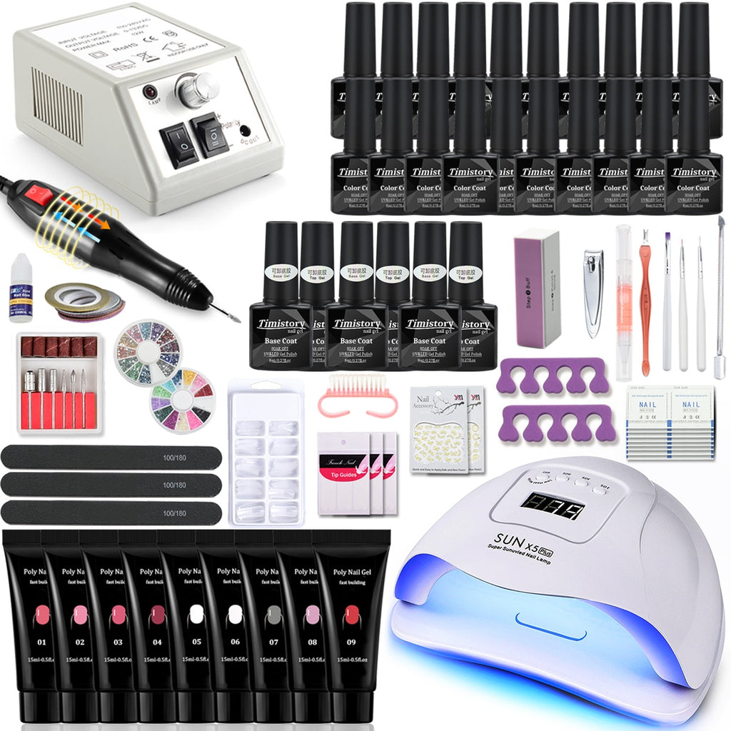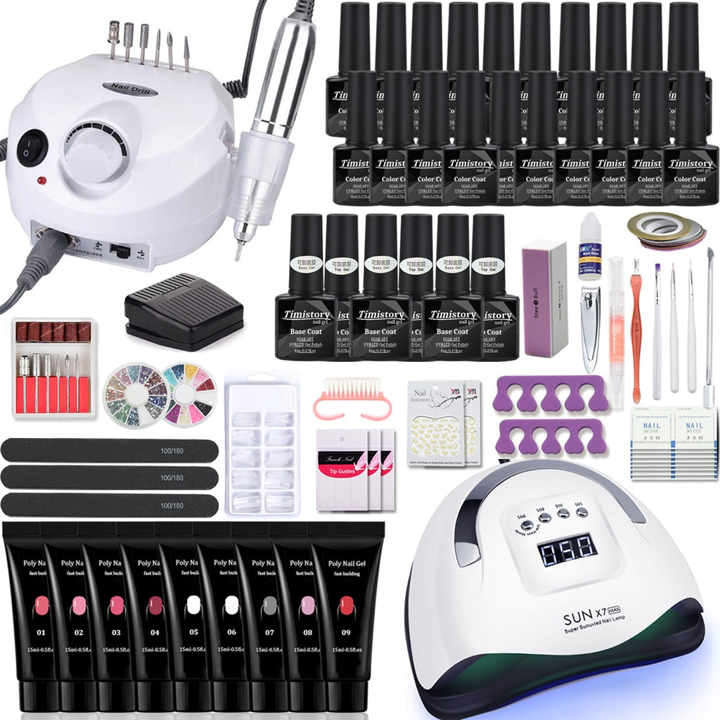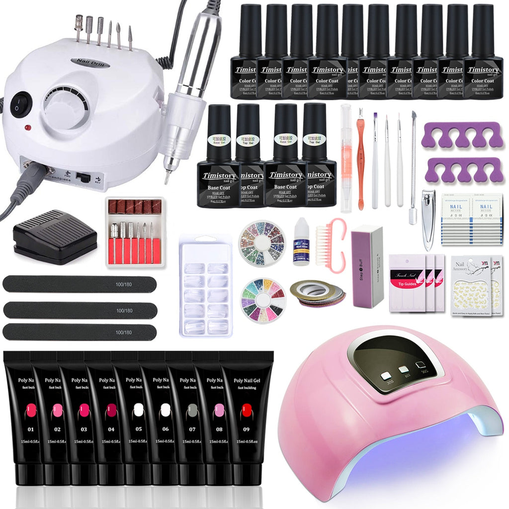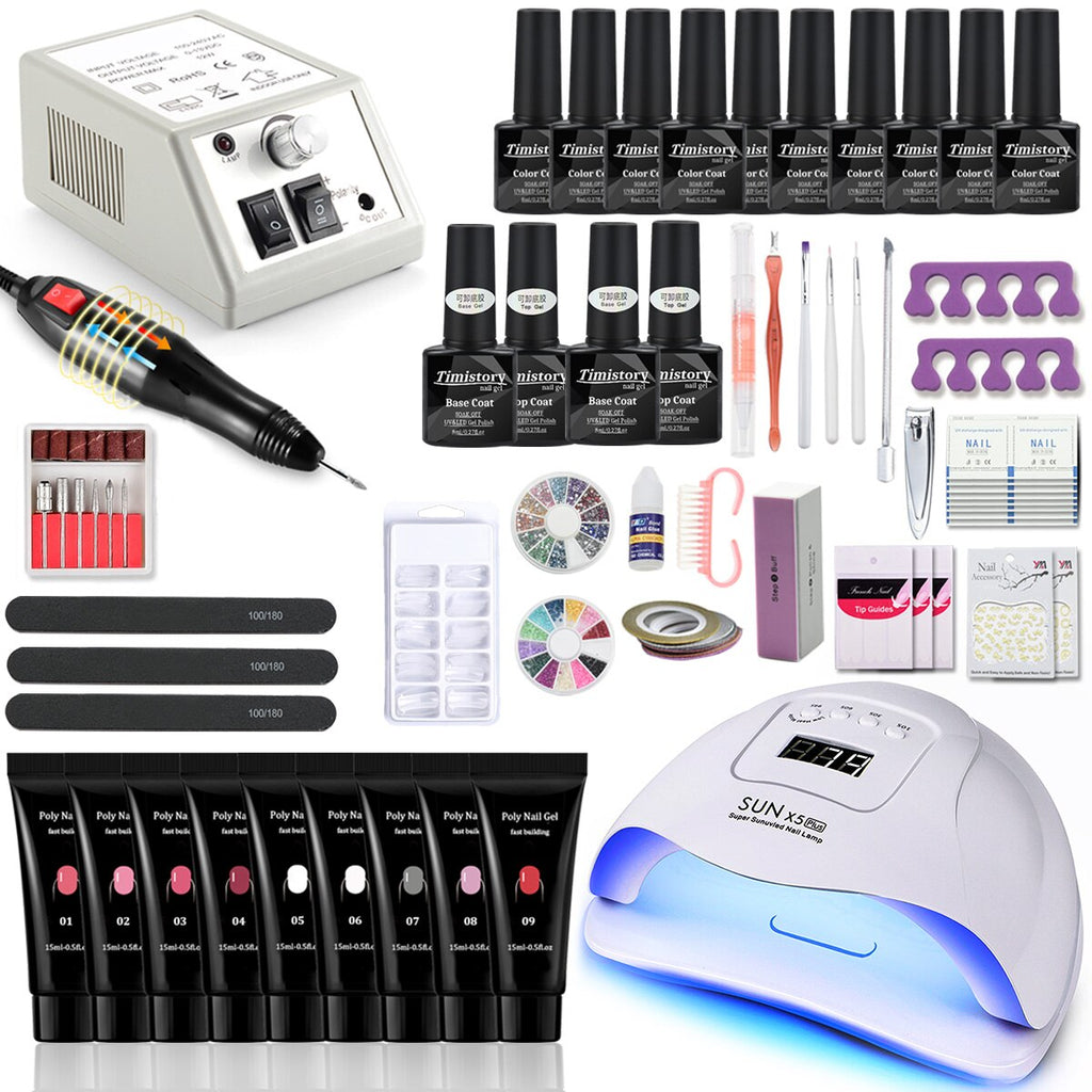 Juego de uñas Juego de manicura con 114W/120W/54W Lámpara de uñas LED 35000RPM Taladro de uñas 20/10 Color Poly Extension Nail Gel Set