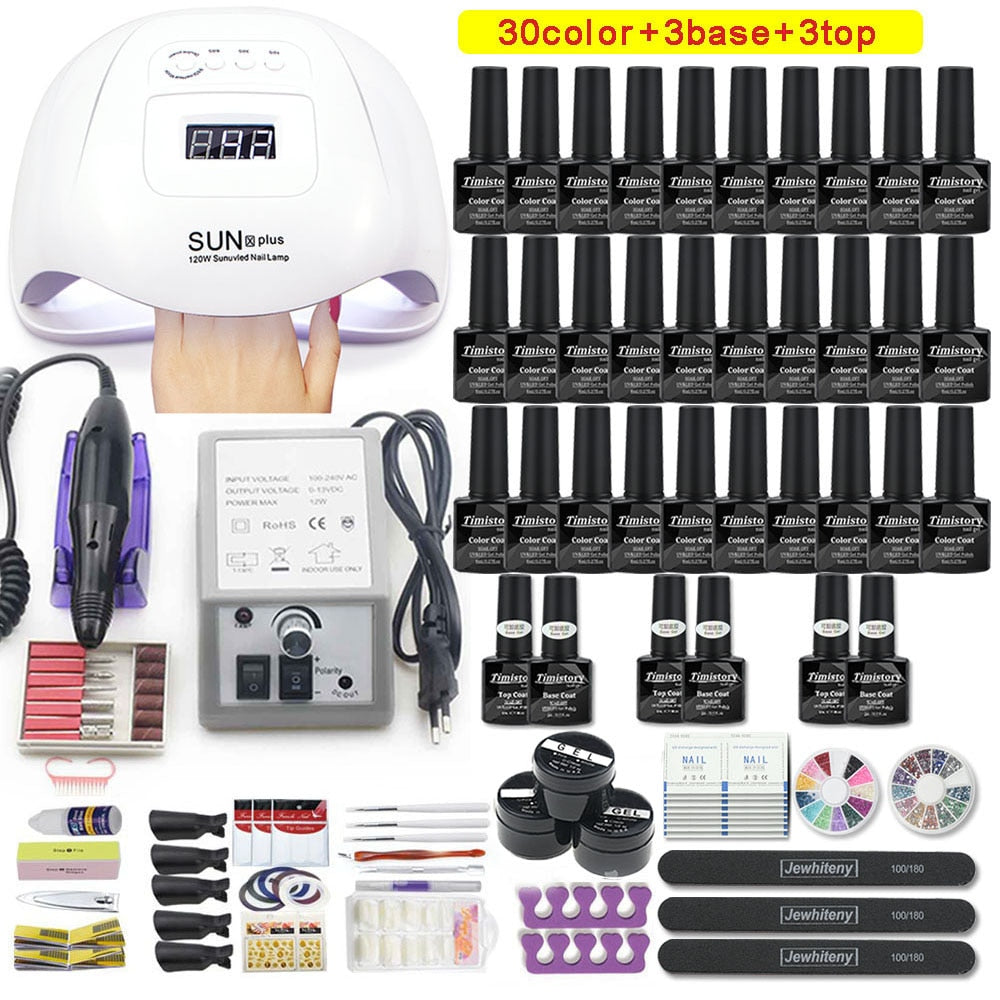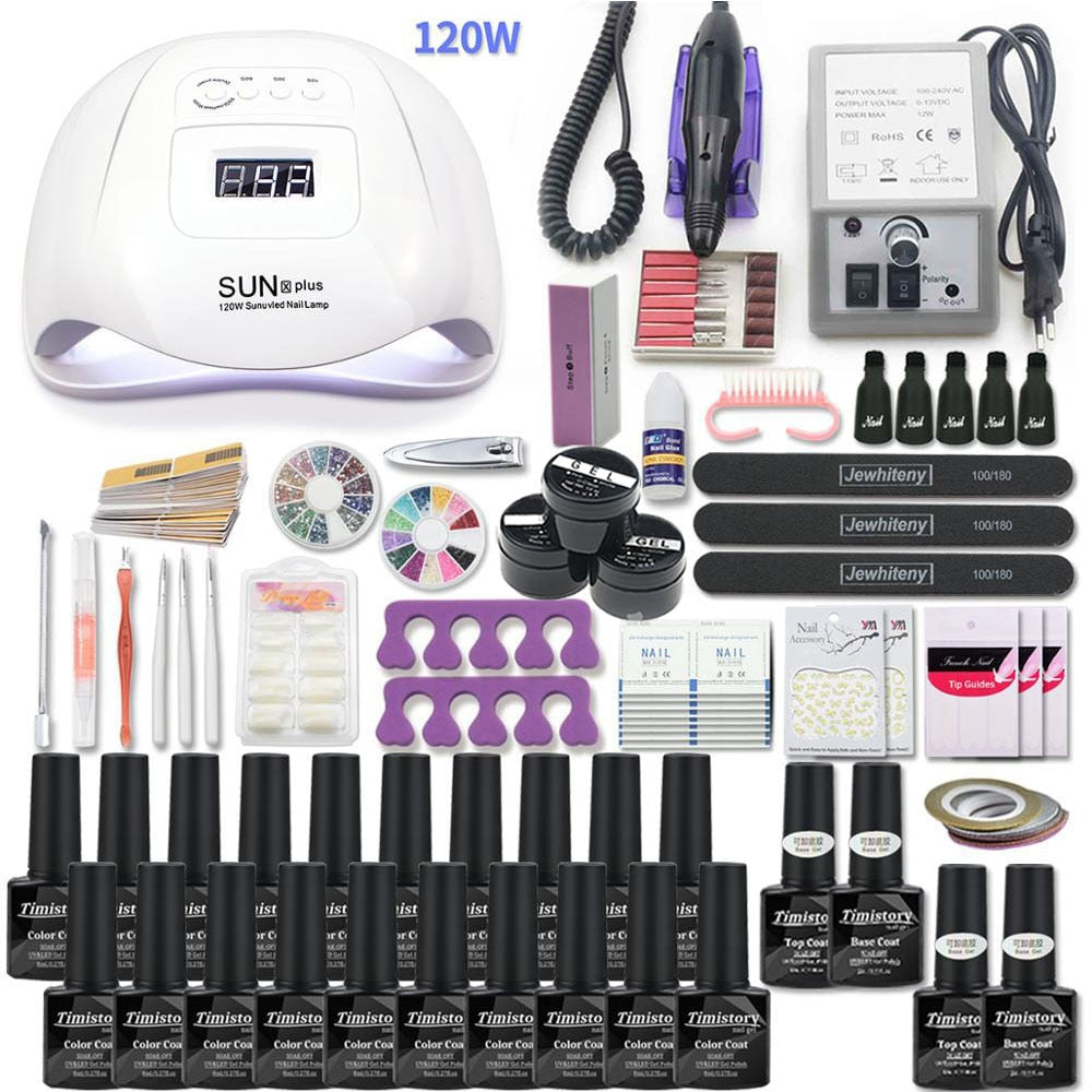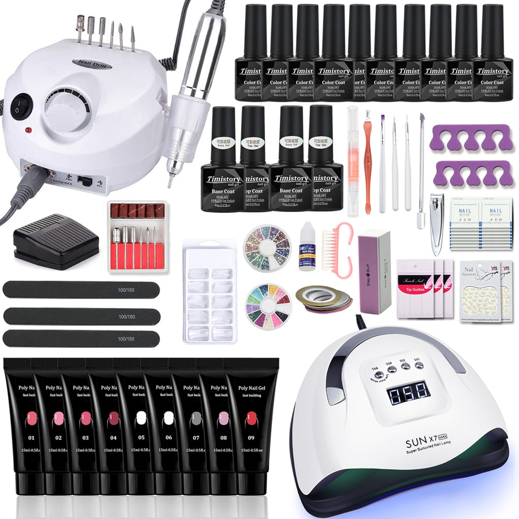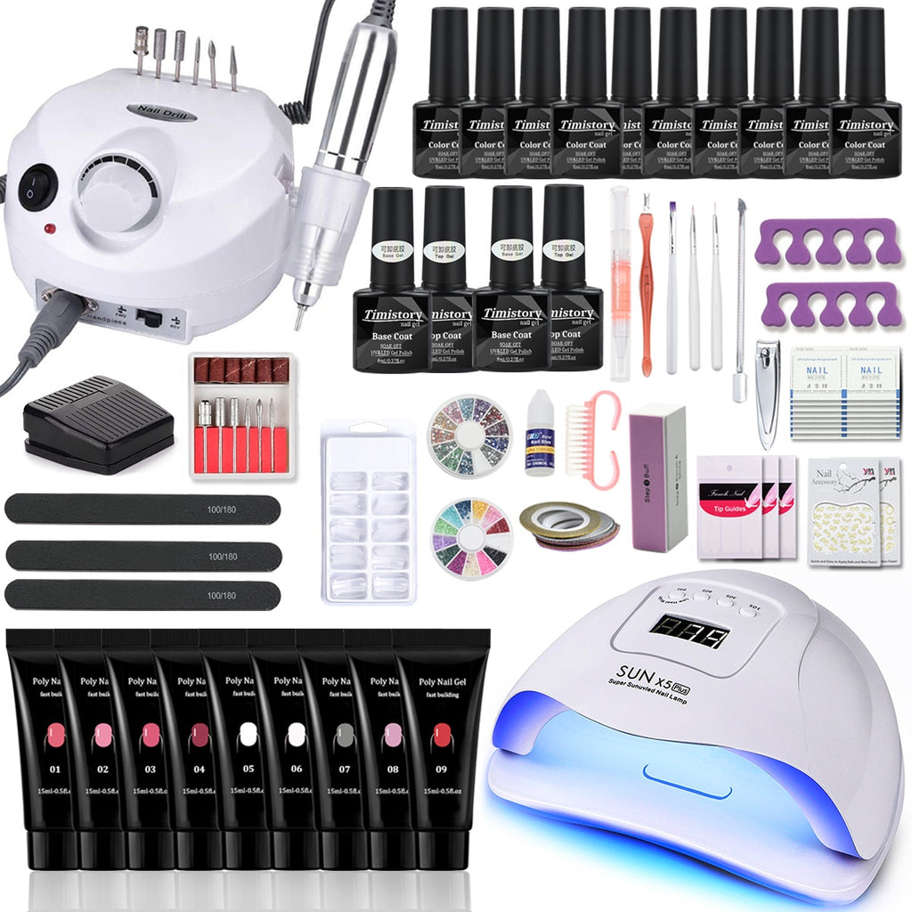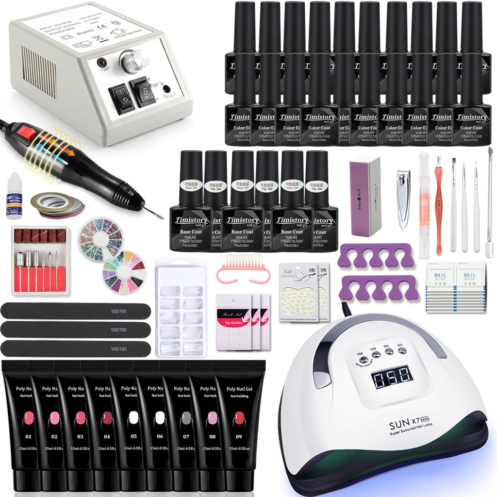 Juego de uñas Juego de manicura con 114W/120W/54W Lámpara de uñas LED 35000RPM Taladro de uñas 20/10 Color Poly Extension Nail Gel Set