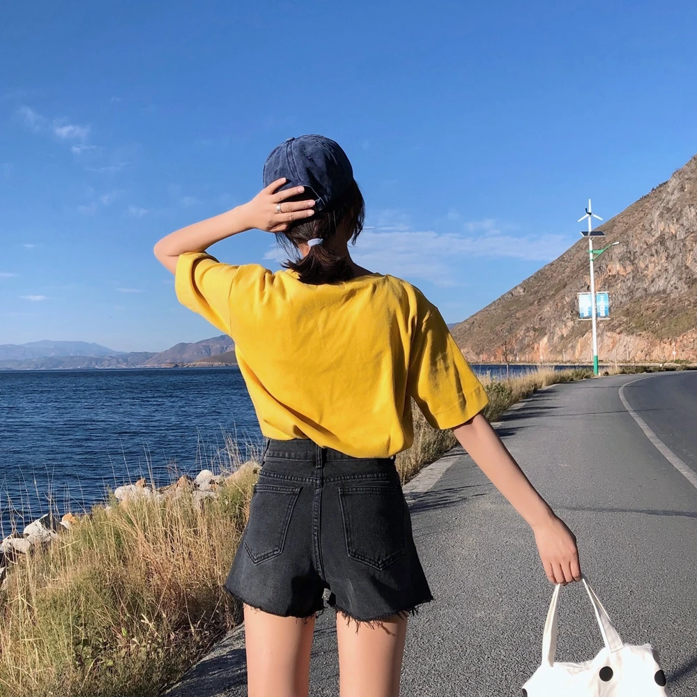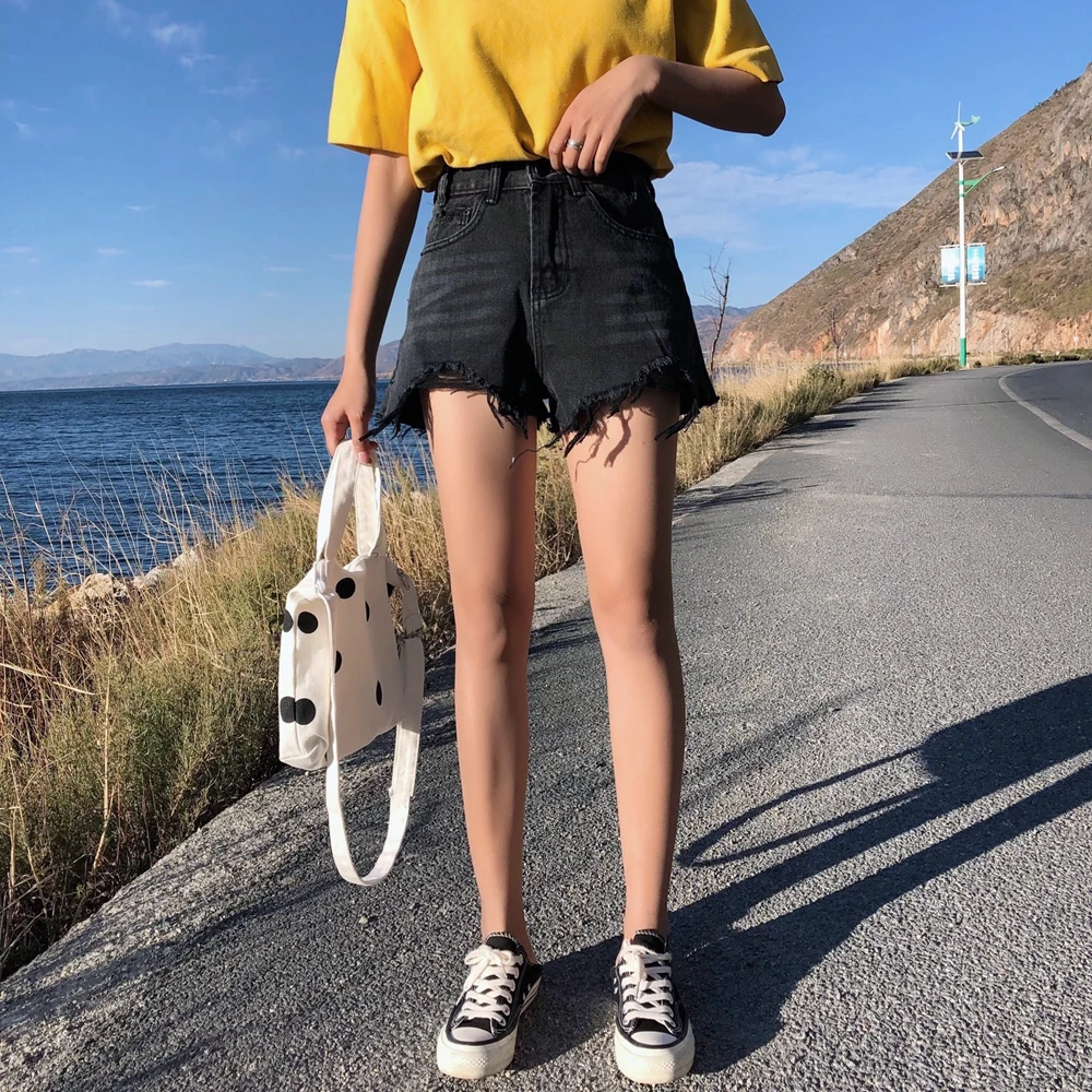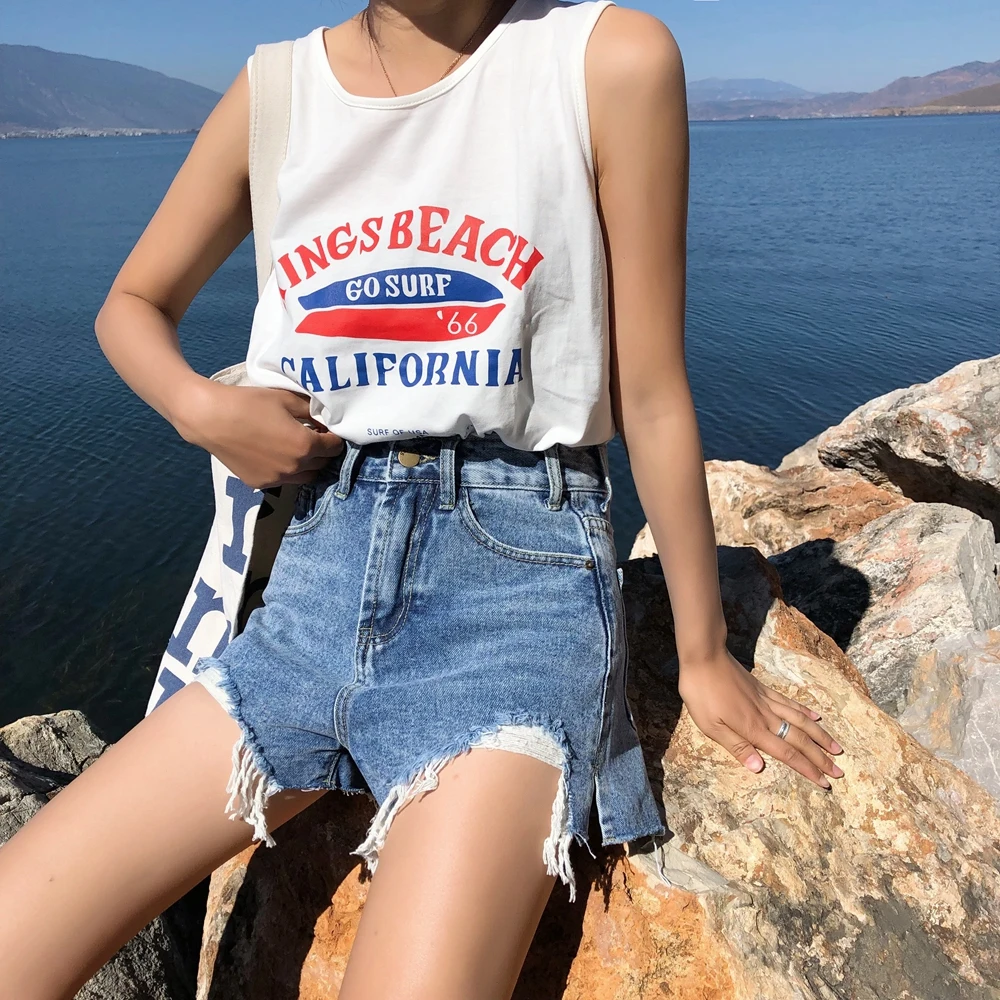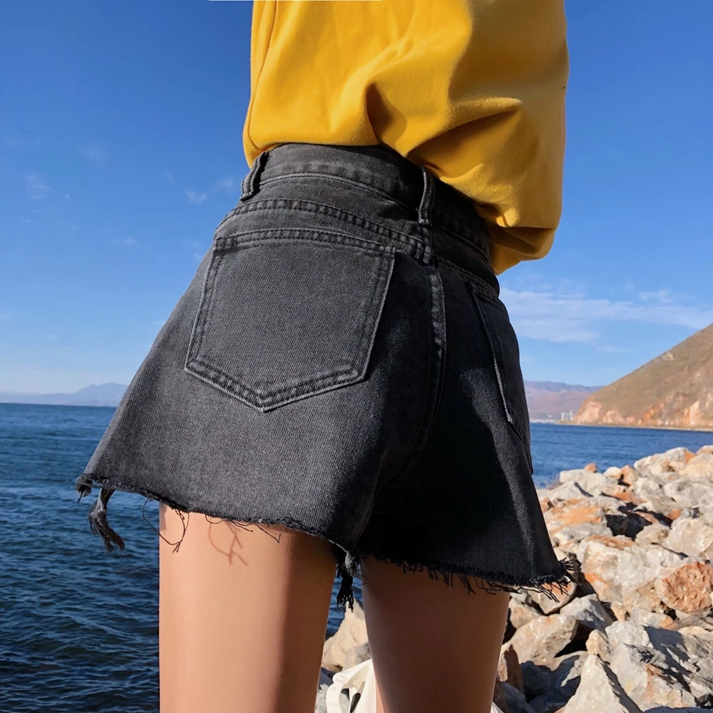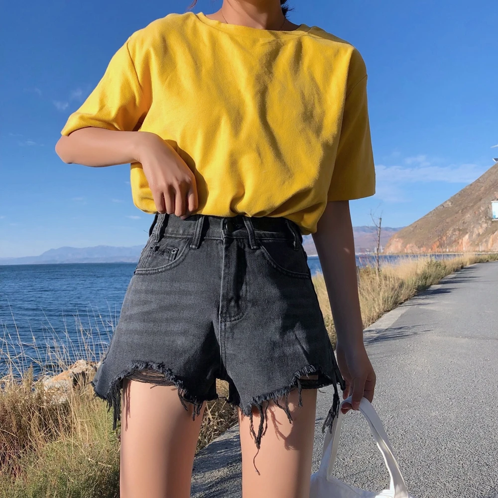 cintura alta : pantalones cortos de mezclilla de cintura alta