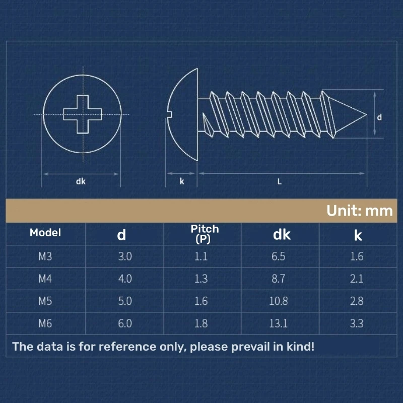 10-50pcs Black 304 Stainless Steel Phillips Large Round Truss Head M3 M4 M5 M6 Cross Mushroom Head Self Tapping Wood Screws