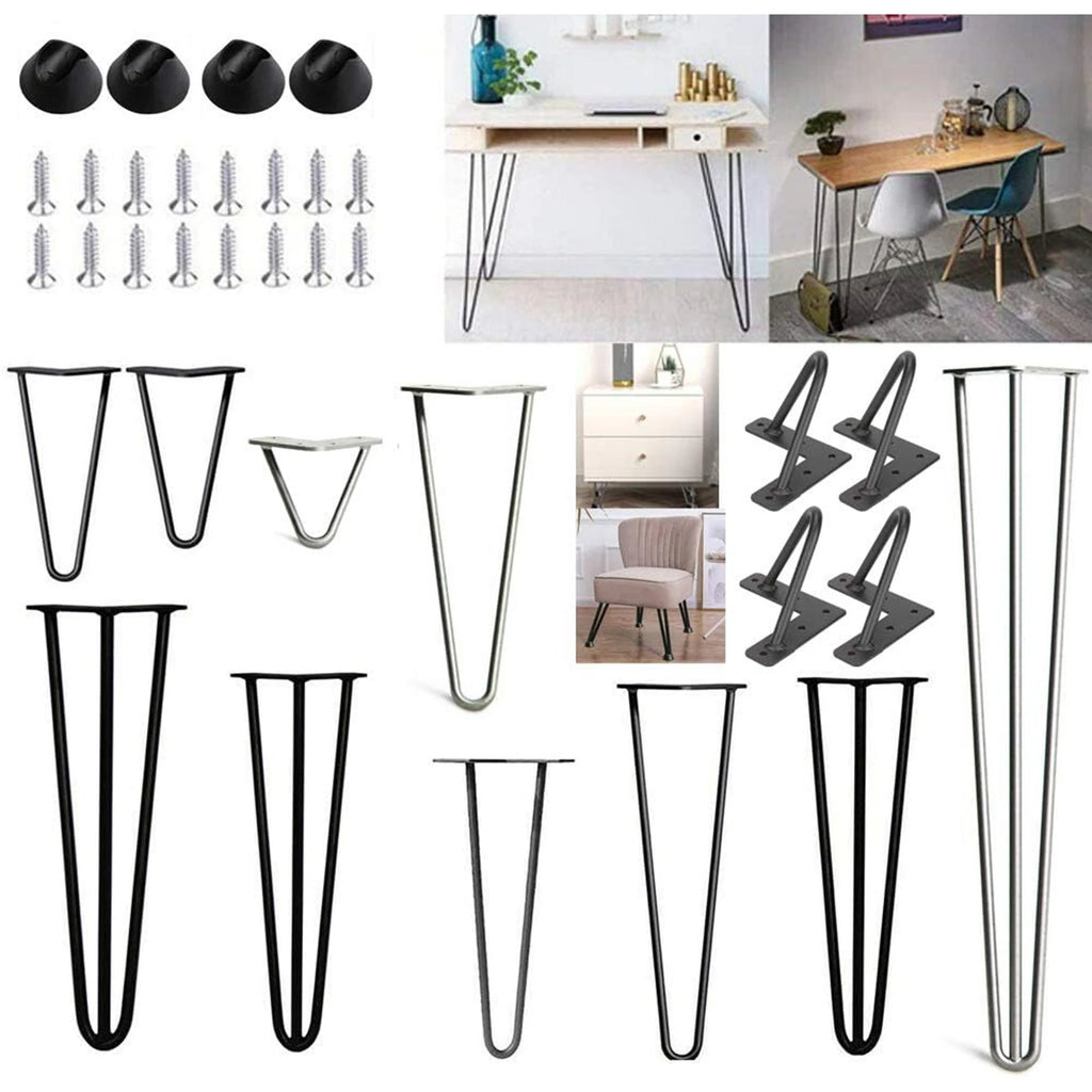 4/8/10/12/14/16/28/34IN 4 x Hairpin Table Hair Pin Legs Set with FREE Feet Protector & Screws for Furniture Bench Desk