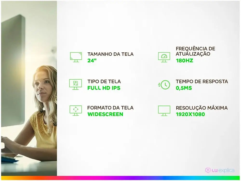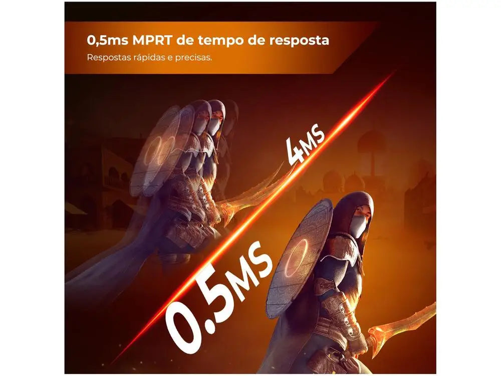 The AOC Gaming G4 24G4/P/57 24 "gaming monitor will surprise you with so much technology. With Full HD resolution (1920x1080), it has a refresh frequency of 180Hz, IPS panel and response time of 0.5 ms MPRT. It has HDMI connections, DisplayPort, and Audio Output. It offers various technologies such as Low Blue Light, Shadow Control, Aim Mode, Low Input Lag, Screen +, G-Menu, HDR and has the adjustable base. Compatible with NVIDIA G-Sync, gives gamers a smooth, fast and responsive experience in all games 180Hz refresh rate completely unlocks cutting-edge GPUs, bringing an unprecedented fluidity to the image on your screen. With every detail brought sharply into focus and every movement displayed with crystal clear clarity, feel your reactions become one with the action and elevate your game. The response time of 0.5 ms MPRT provides even more fluid and accurate matches. With this technology, you enter the game with virtually non-existent latency, perfect for those who seek maximum agility and always aim for victory. With IPS panel, detect your enemies even in shadows. This technology delivers vibrant colors without compromising speed, providing a wide field of view regardless of angle. Adjustable hexagonal base, perfect for gamers who play with the keyboard on their side. It allows adjusting height, tilt, side turn and even the bidirectional pivot, ensuring maximum comfort for long hours of play.