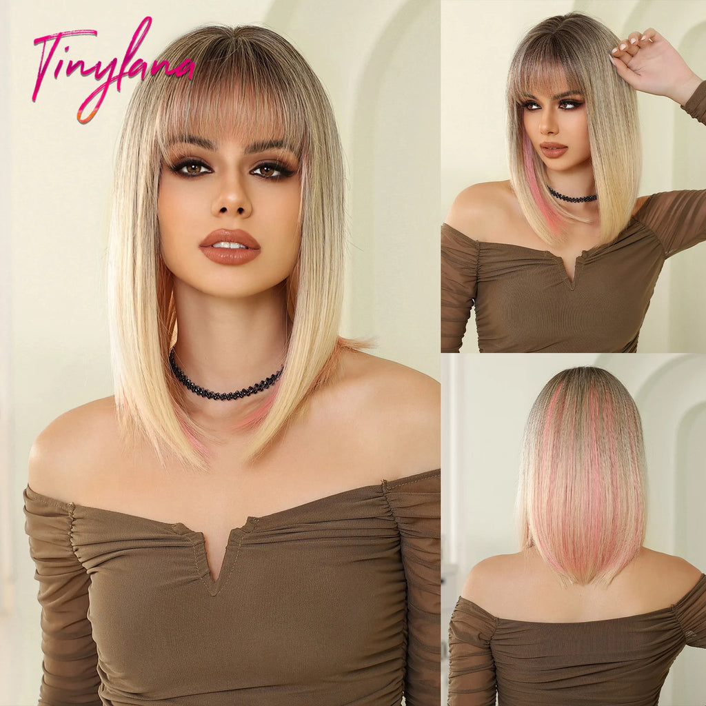 Blue Purple Ombre Cosplay Synthetic Wigs Short Bob Straight Lolita Halloween Hair Wig with Bangs for Women Afro Heat Resistant