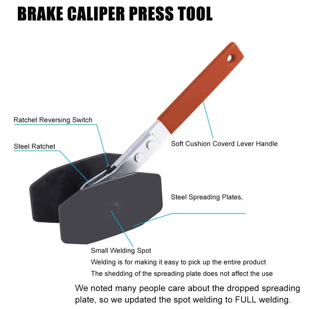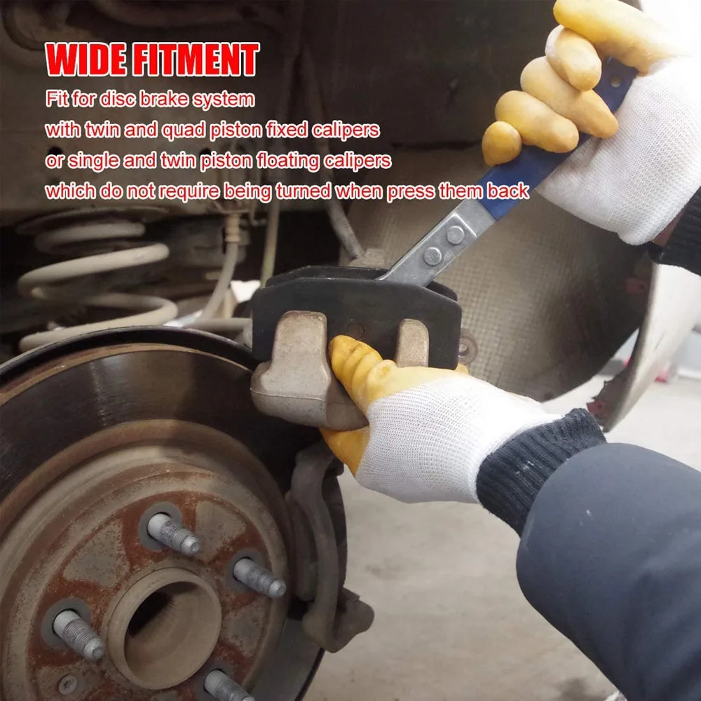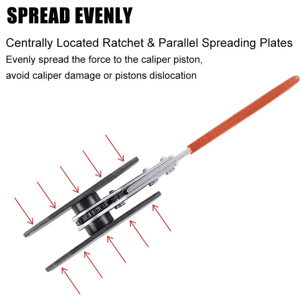 Design:the piston spreader tool is designed to 360 degrees swing , so the spreader can be placed any position and the tool can be used from any direction, thickened and reinforced pad and comfortable handle