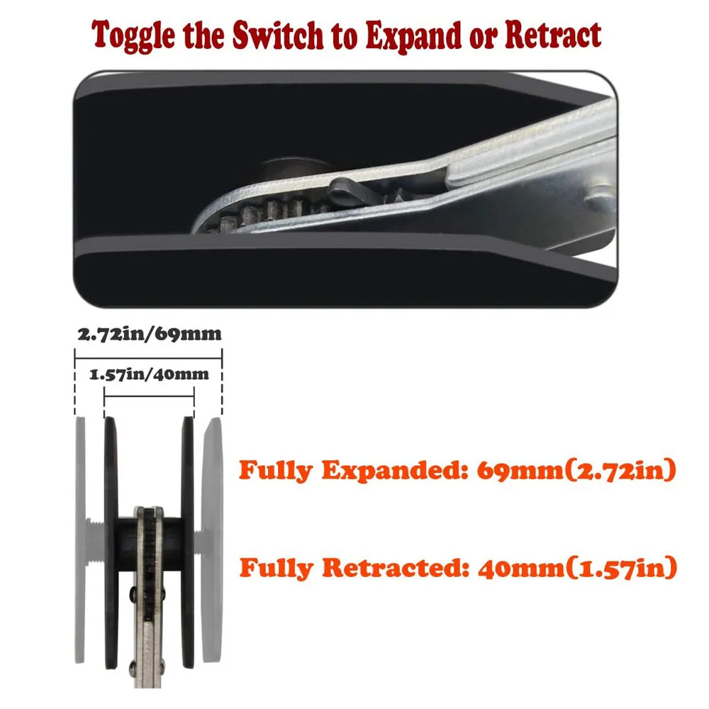 Size:The brake caliper press tool total length is about 10.7''/271mm, the retraction supports about 1.3''/33mm, and the spread supports about 2.52 ''/64mm,see the picture for detai
