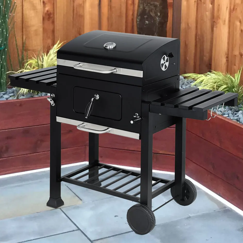 The spring handle provides access for the firebox, cool-to-touch and convenient to add charcoals.
