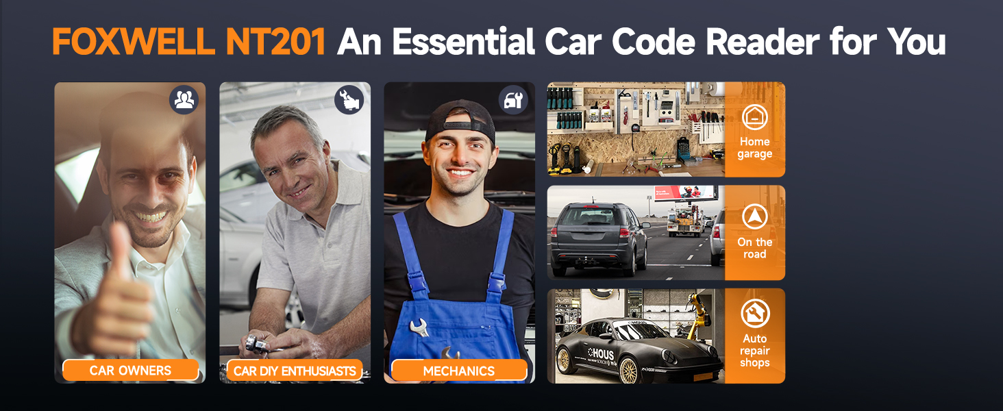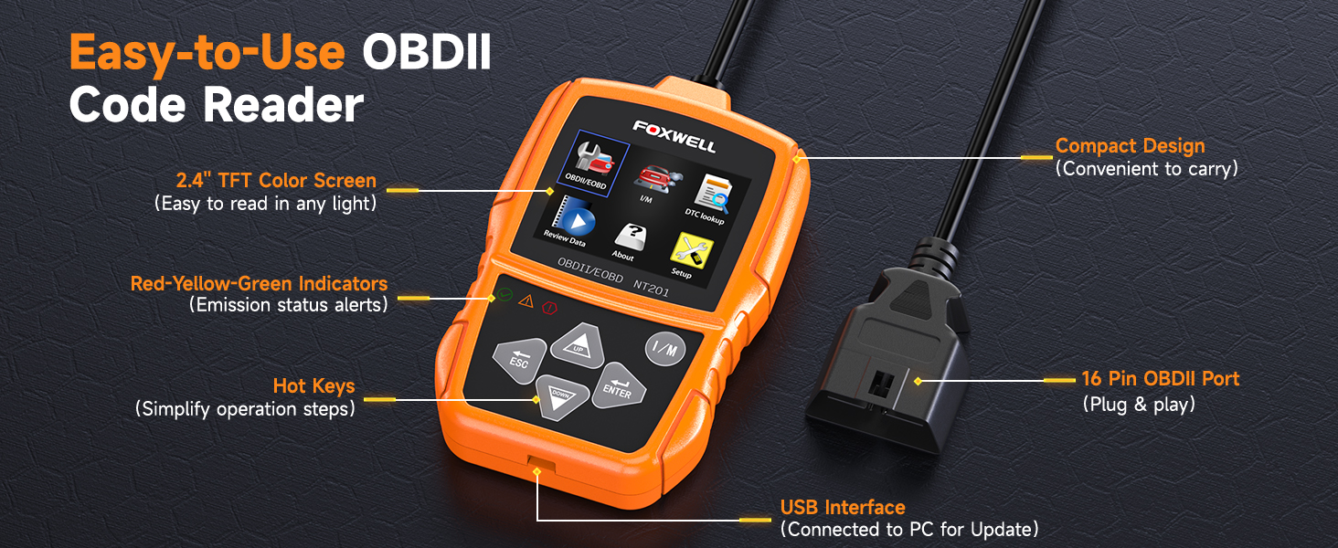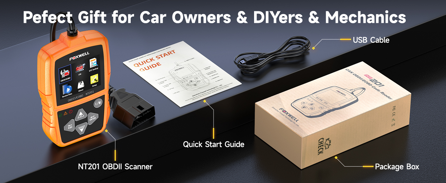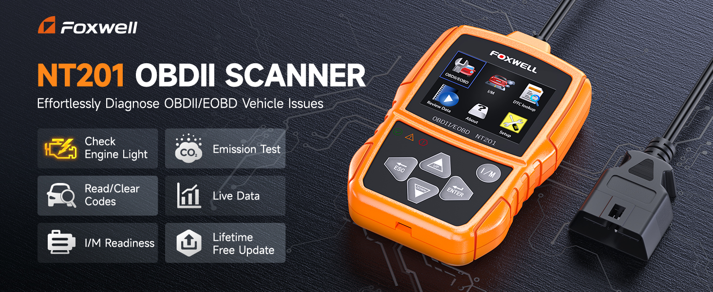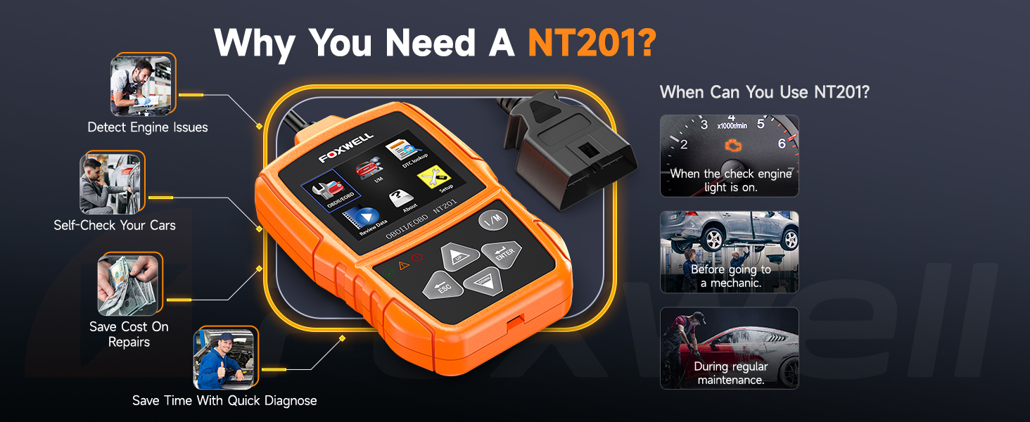FOXWELL NT201 obd2 scanner diagnostic tool is designed with car owners in mind, This obd scanner is easier and more intuitive for those who may not have extensive automotive knowledge. It can help identify why the check engine light is on, read and clear engine fault codes, turn off the check engine light MIL, and reset monitors.