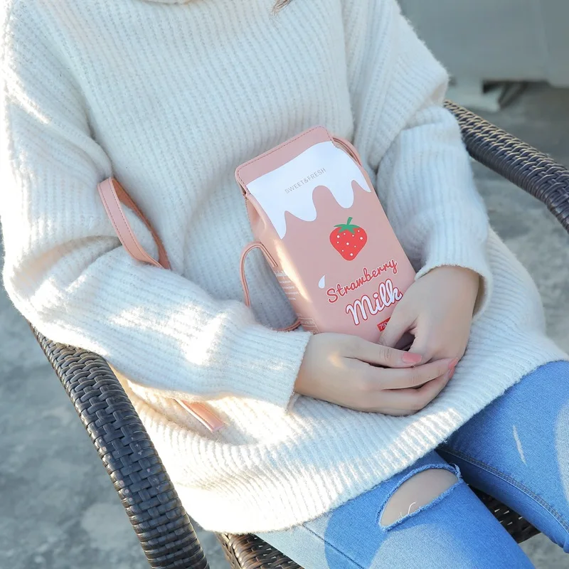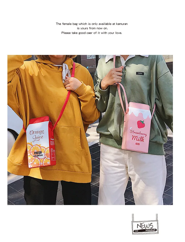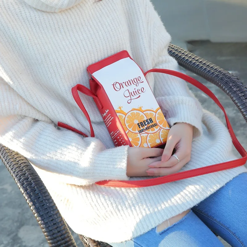 Fun Milk Orange Juice Box Design Young Girl's Shoulder Bag Novelty Crossbody Bag for Women Cartoon Purses and Handbags Kawaii